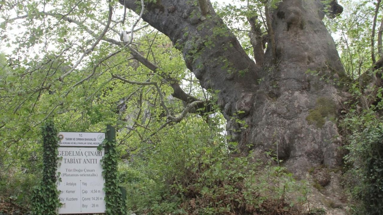 Araştırmacı yazar Mustafa Aydemir’in kaleme aldığı “Hikaye ve Efsaneleriyle Türkiye’nin Tarihi – Ulu Çınarları” kitabıyla da yaşı ispatlanan ve dünyanın en büyük, en yaşlı ve en görkemli çınarları arasına giren ‘Gedelme Çınarı’, doğaseverleri bekliyor. Çınarın yaşının 2 bin 700 olarak belirlenmesi ve yanında bulunan Gedelme Kalesi’nden daha yaşlı olması, ağacı ihtişamının yanı sıra, tarihe tanıklığıyla da özel kılıyor.
