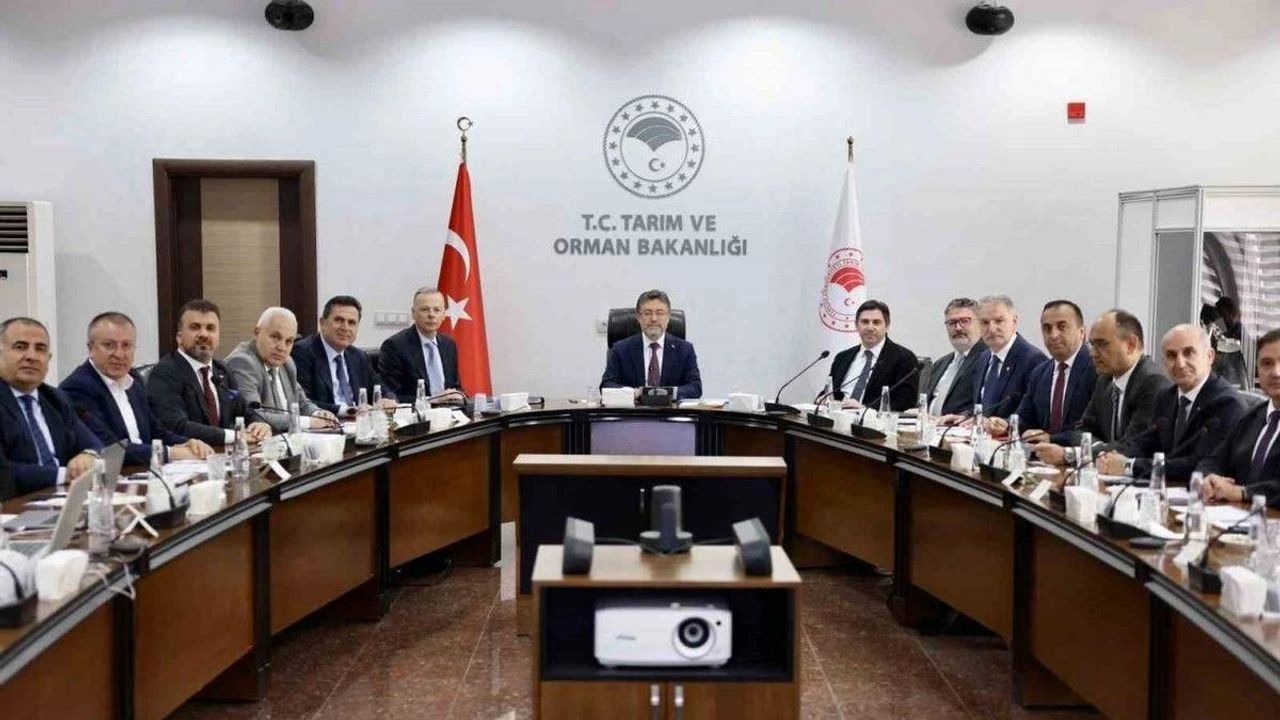 Tarım ve Orman Bakanı İbrahim Yumaklı, Ticaret Bakan Yardımcısı Özgür Volkan Ağar ile Türkiye İhracatçılar Meclisi (TİM) Hububat, Bakliyat, Yağlı Tohumlar ve Mamulleri Sektör Kurulu Başkanı Ahmet Tiryakioğlu ve beraberindeki üyelerle Bakanlık’ta bir araya geldi.