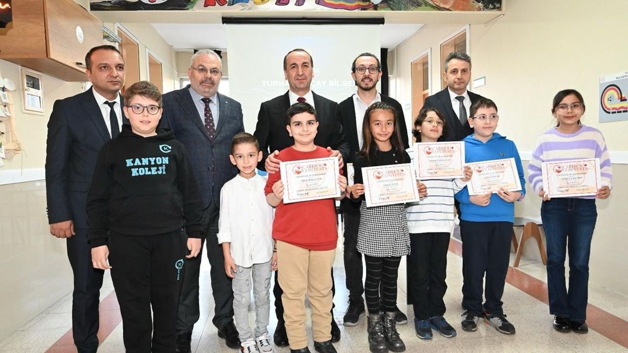 Geçtiğimiz günlerde düzenlenen Uluslararası Caribou Matematik Yarışması’na Uşaklı öğrenciler damga vurdu. Uşak Turhan Akçay Bilim ve Sanat Merkezi’nde eğitim gören ve 2. sınıflar kategorisinde yarışan Yaşar Eymen Gün ve Ömer Deniz Altun, 2 bin 590 öğrenci arasında büyük soruları doğru yanıtlayarak dünya birincisi oldu. Ayrıca 8 bin 637 öğrencinin katıldığı 3 ve 4.Sınıf kategorisinde de Hasan Feyzi Koçyiğit, Fatma Ela Koçman, Çınar Ege Tarhan, Muhammed Emir Akgün, Gözen Geveze ve Çağan Türkkan da bütün soruları doğru cevaplayarak yine dünya birinciliği elde etti.