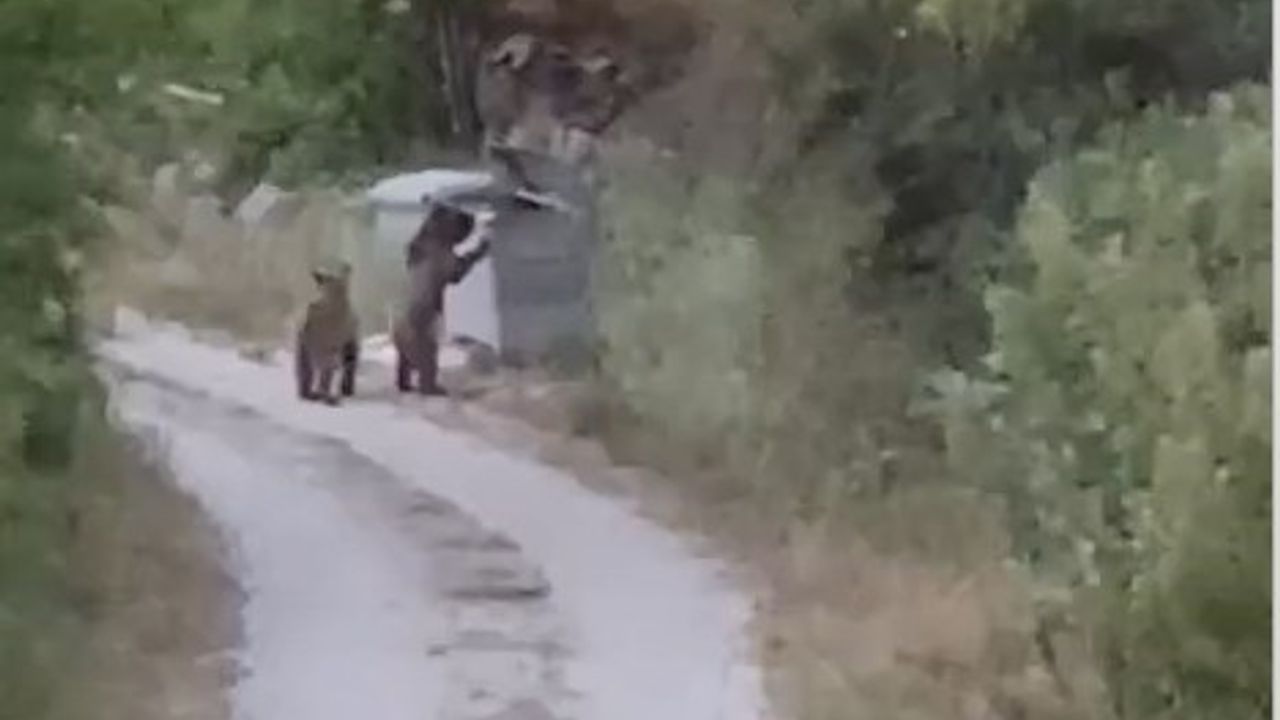 Olay sabah saatlerinde meydana geldi. Aç kalan ayılar, Tokat İl Özel İdaresi’ne ait çöp konteynerlerine yöneldi. İçeride yiyecek arayan ayılar, konteynerleri karıştırarak çöpleri etrafa saçtı.