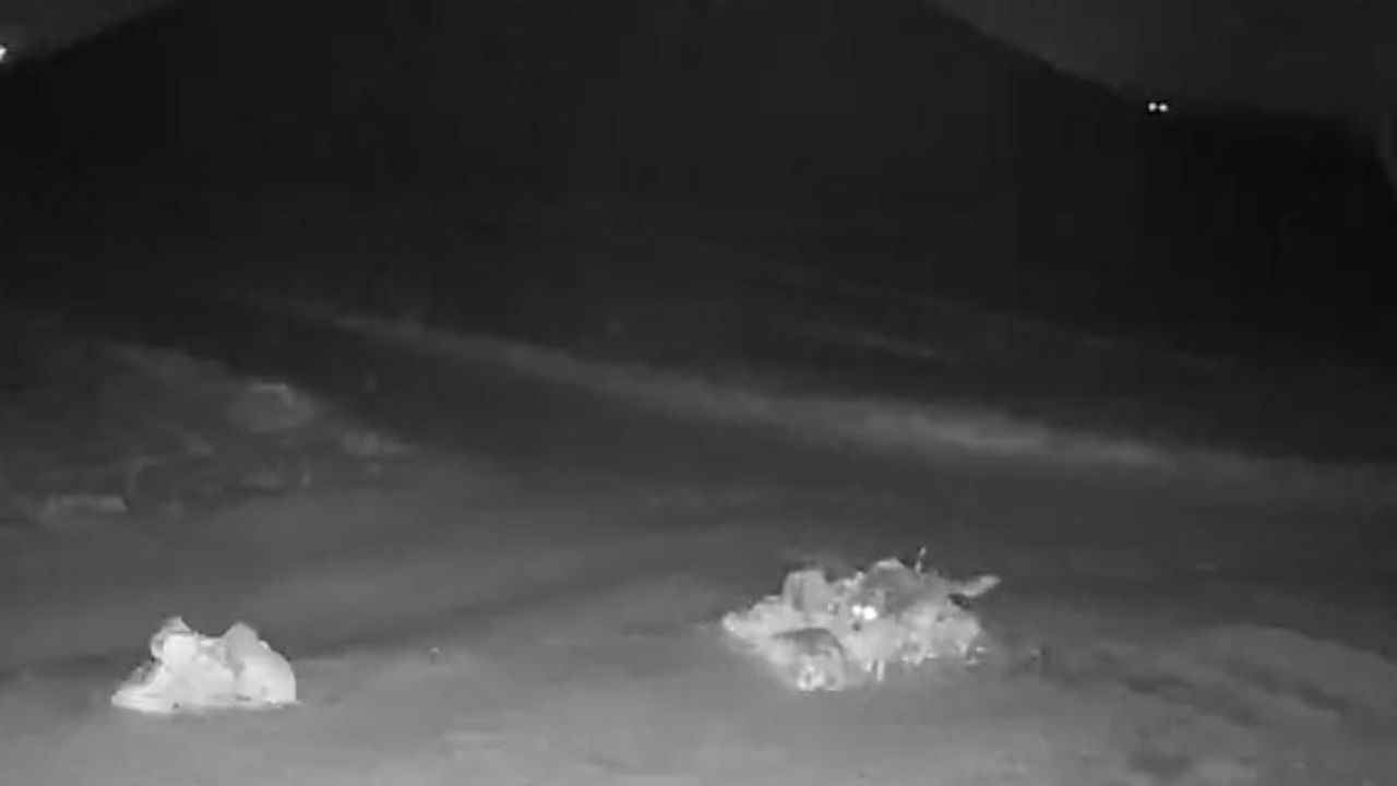 Yiyecek aramak için köy içine giren iki kurt, bir evin güvenlik kamerası tarafından görüntülendi. Kaydedilen görüntülerde kurtların sokaklarda bir süre dolaştığı ve çevrede gezindikten sonra gözden kaybolduğu görüldü.