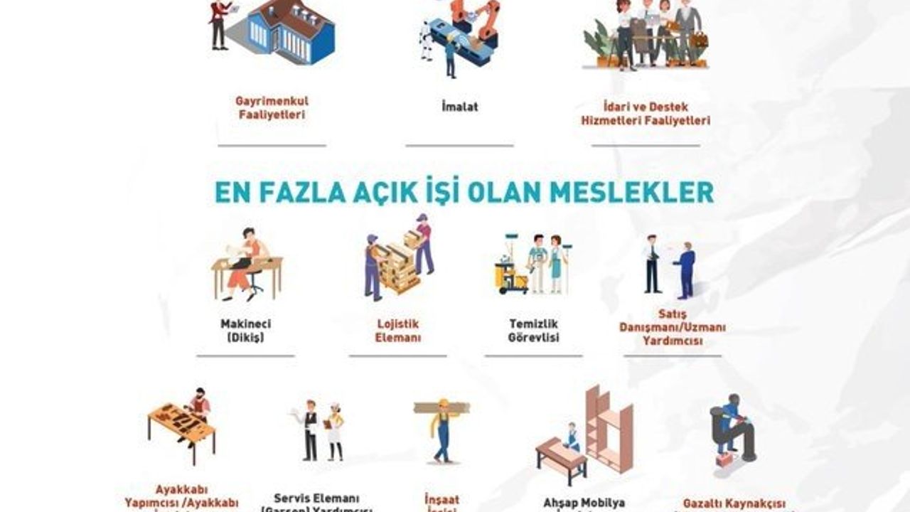 Araştırma sonucunda Türkiye genelinde açık iş oranı en yüksek olan sektörler gayrimenkul faaliyetleri, imalat ve idari ve destek hizmetleri faaliyetleri oldu. En fazla açık işi olan meslekler ise dikiş makinecisi, lojistik elemanı, satış danışmanı, ayakkabı imalatçısı, servis elemanı, inşaat işçisi, ahşap mobilya imalatçısı ve gazaltı kaynakçısı olarak kaydedildi.