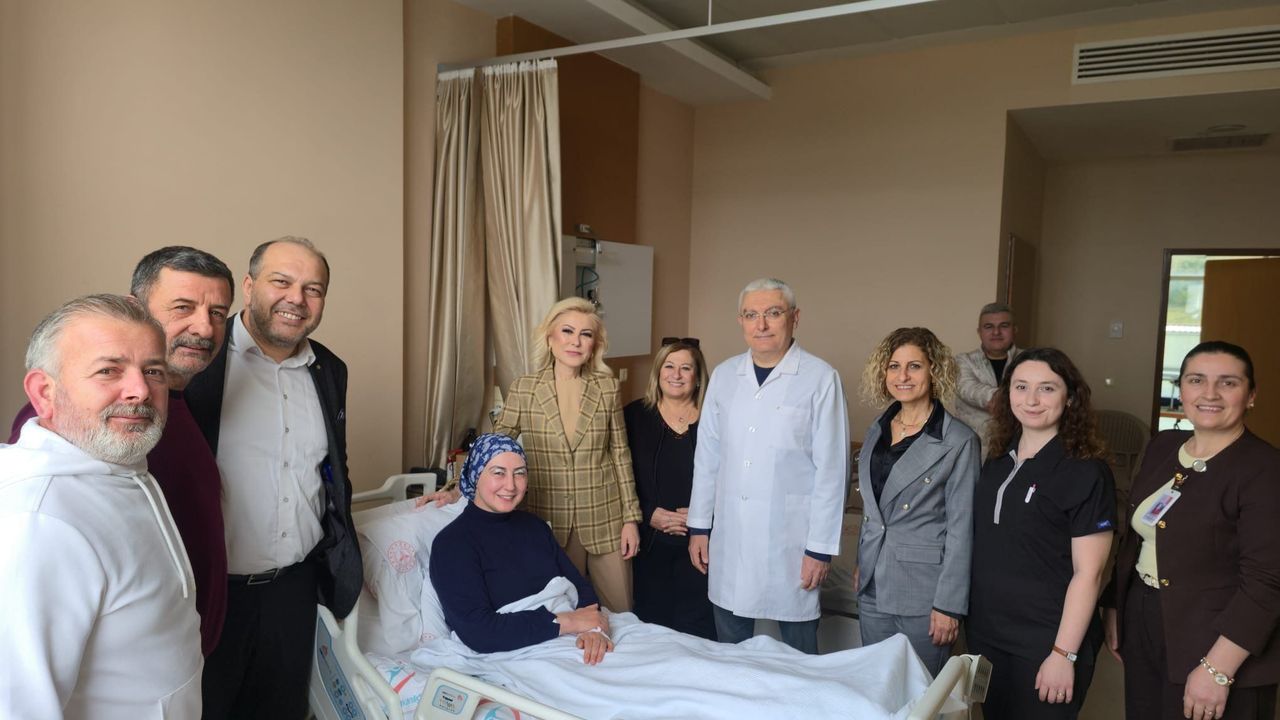 Ziyarete AK Parti İzmir İl Yönetim Kurulu Üyesi Mukaddes Çelik de eşlik ederken, Bursalı hastanedeki ilgilerinden dolayı Başhekim Cihan Arslan ve hastane yönetimine teşekkür etti.