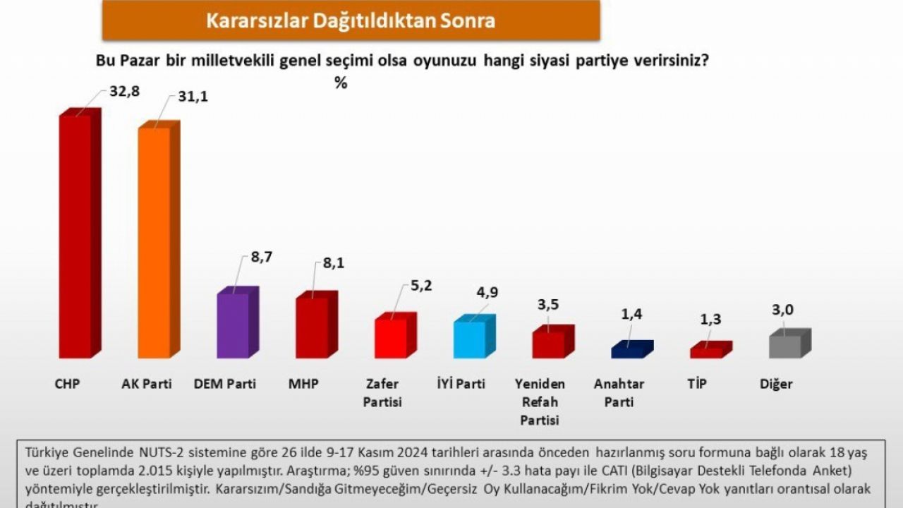 Kararsızlar dağıtıldığında ise şu sonuçlar elde edildi: