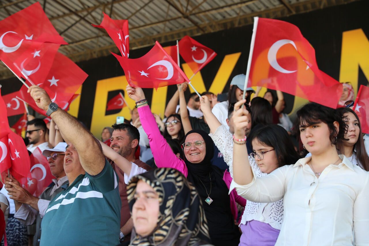 Kaymakam Güney, Başkan Acar ve Garnizon Komutanı Albay Güler, törene katılanların bayramını kutladı. Saygı duruşunun ardından, işaret diliyle ve bando takımı eşliğinde İstiklal Marşı coşkuyla okundu.