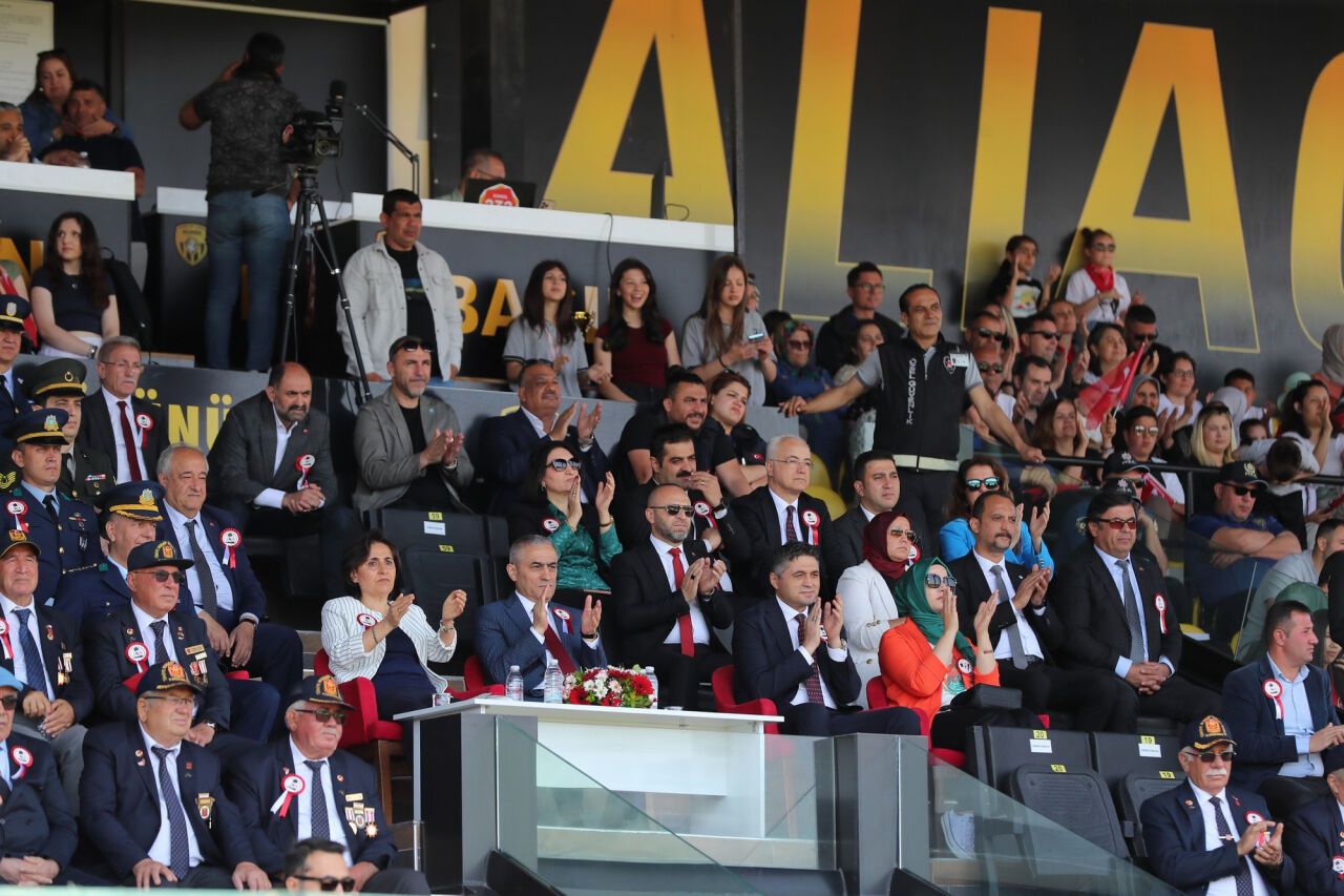 Bayramın 106’ncı yıl dönümü nedeniyle düzenlenen etkinlikler, sabah saatlerinde Atatürk Ortaokulu’ndan başlayan kortej yürüyüşüyle başladı. Yürüyüşün ardından Cumhuriyet Meydanı’nda çelenk sunumu gerçekleştirildi. Kutlamalar, Aliağa Atatürk Stadı’ndaki gösterilerle devam etti.