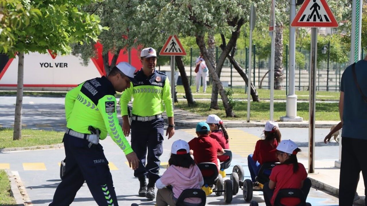 Aliağa Trafik Eğitim Parkı’nda ise Jandarma Trafik Tim Komutanlığı ile Trafik Denetleme Büro Amirliği iş birliğinde çocuklara uygulamalı trafik eğitimi verildi. Bu eğitimlerde yaya geçidi kullanımı, güvenli davranış biçimleri ve temel trafik kuralları çocuklara öğretildi.