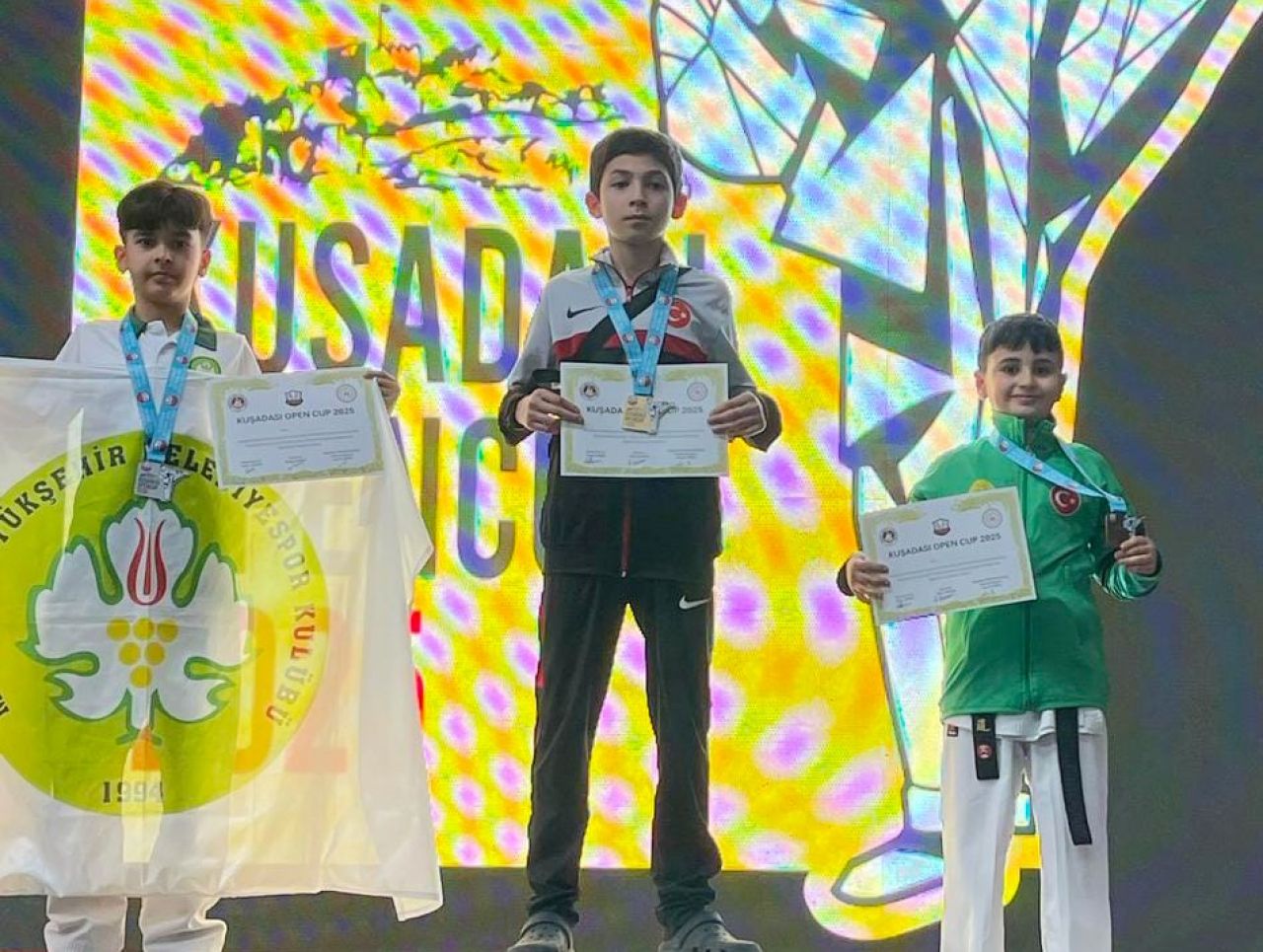 Aliağa Belediyesi Spor Okulları Karate Kursu, Nezahat Aksu ve Caner Karaca’nın antrenörlüğünde eğitim gören 9 sporcusuyla katıldığı Open Cup 2025 turnuvasından 5 madalya ile döndü. Turnuvada başarılı sonuçlar elde eden öğrenciler, kumite dalında gösterdikleri performansla dikkat çekti. Yağız Kerim Akarlı, Emir Uçan, Mehmet Emre Kadan, Furkan Topkaya ve Rüzgar Oral, sırasıyla 37, 55, 35, 40 ve 45 kiloda üçüncülük madalyalarına layık görüldü.