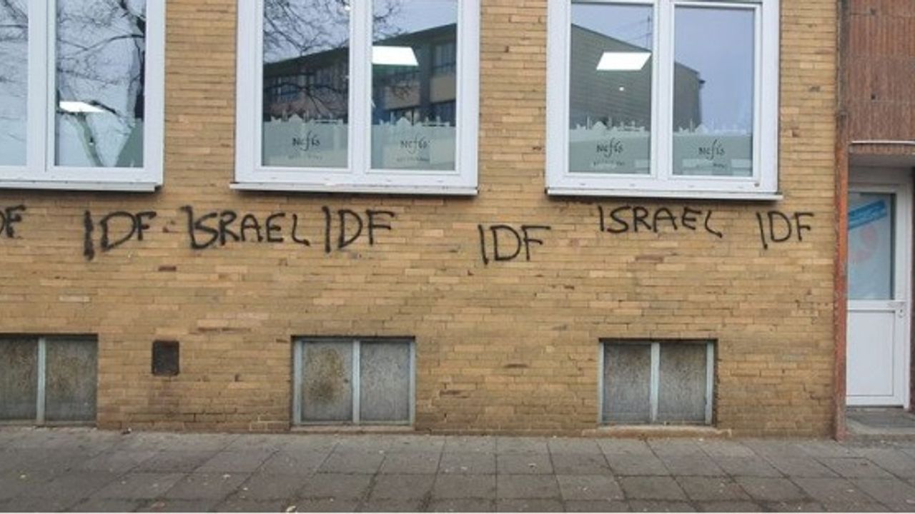 DİTİB Hannover Merkez Camii – Dış cephesine sprey boya ile İsrail destekli ifadeler yazıldı.