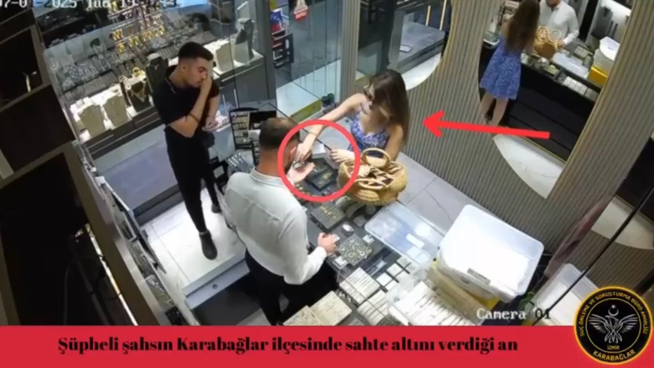 Soruşturmanın ikinci ayağında ise M.L. (34) adlı kadın şüpheli, Karabağlar’da bir kuyumcuda sahte altın bozdurmaya çalışırken tespit edildi. Kimliğinin belirlenmesi için yaklaşık 36 farklı iş yerinin güvenlik kamerası görüntüleri incelendi. İncelemeler sonucunda, olay sonrası araçla kaçtığı belirlenen kadının daha önce Denizli ve İzmir’in Çiğli ilçesinde de benzer olaylara karıştığı anlaşıldı.