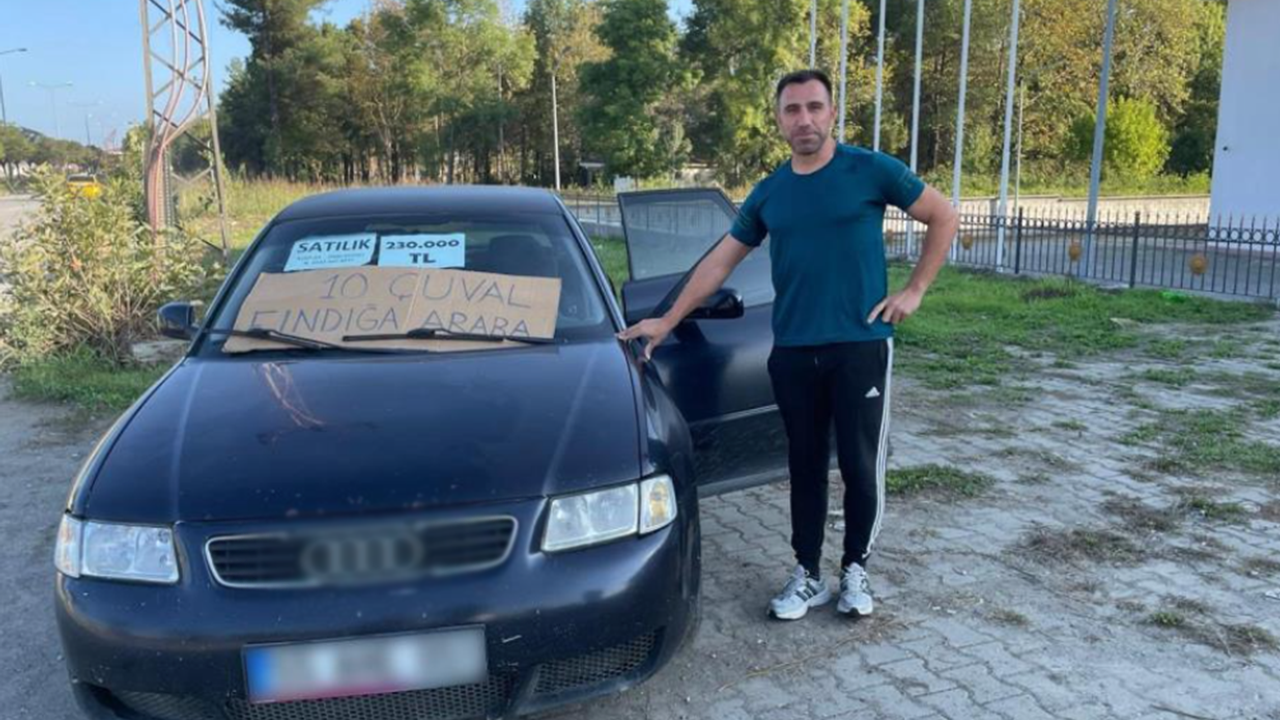 Özkurt, fındık fiyatlarının yükselmesiyle birlikte yaklaşık 230 bin TL değerindeki aracını, 50 randıman gelen fındıkla 10 çuval karşılığında takas etmek istediğini açıkladı.