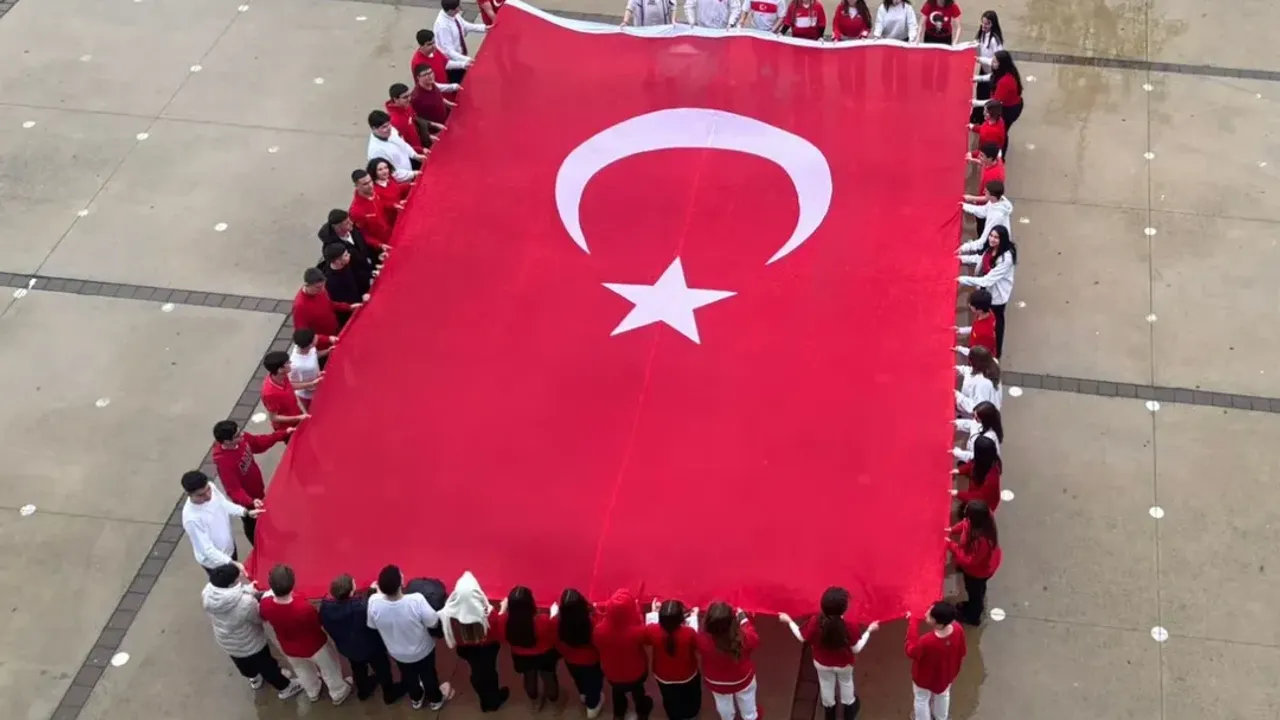 Ardından okul bahçesinde kırmızı beyaz giyinen öğrencilerimiz hep birlikte fotoğraf çektirerek bayrağımıza olan minneti, saygıyı ve sevgiyi ifade etti.