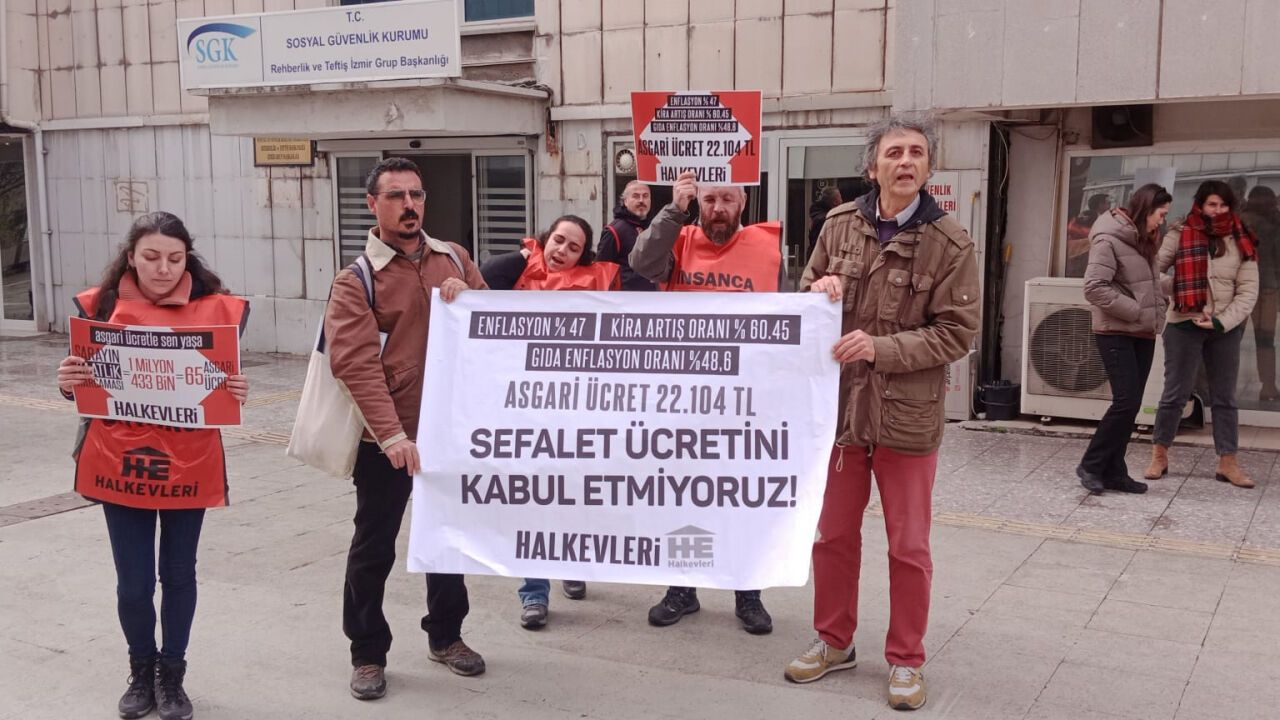 Basın açıklaması sırasında toplanan kalabalık, hükümetin ekonomik politikalarını ve açıklanan asgari ücreti protesto etti. Halk Evleri temsilcileri, insanca yaşam taleplerini yineleyerek mücadeleye devam edeceklerini duyurdu.
