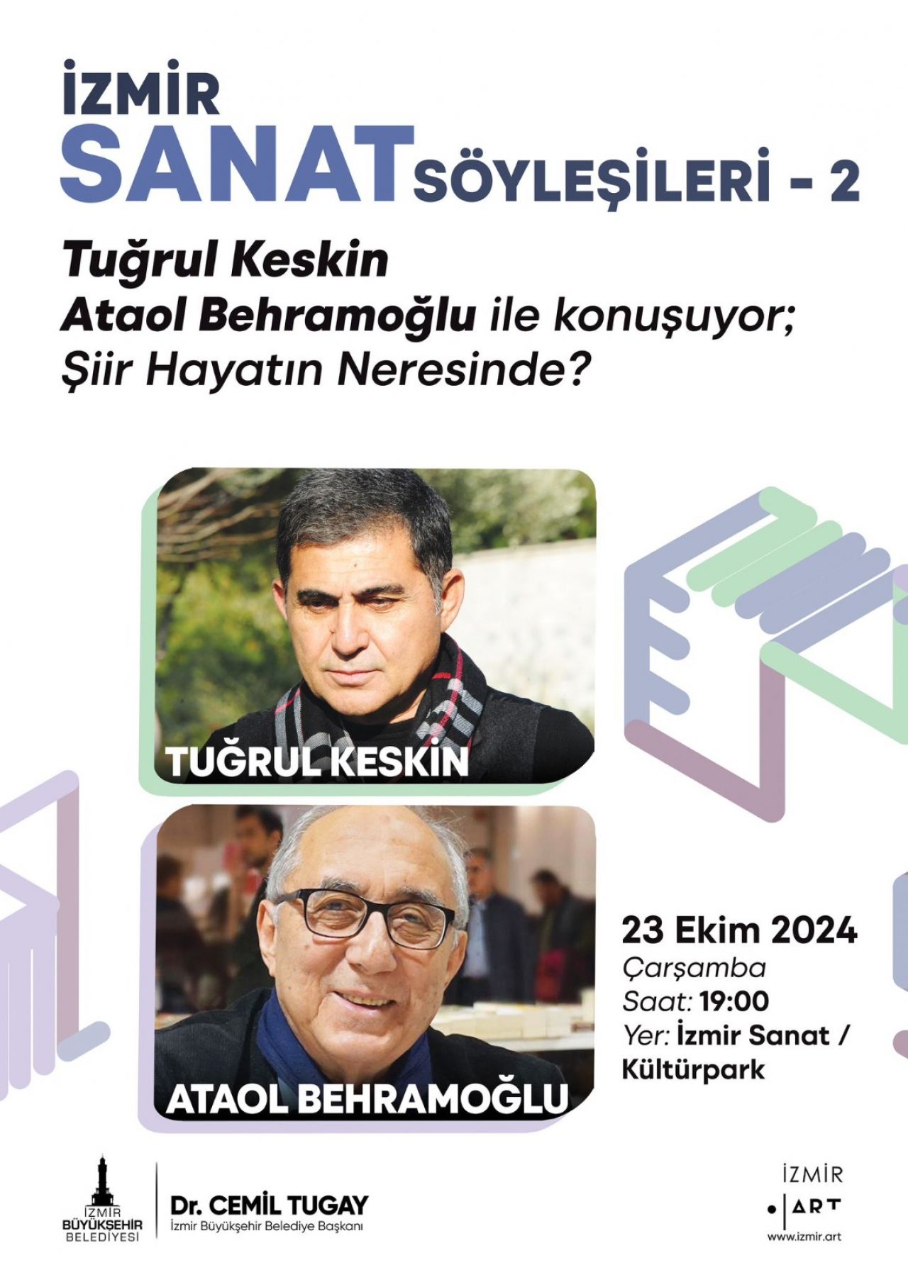İzmir Sanat Söyleşileri, ünlü yazar Ataol Behramoğlu'nu ağırlamak üzere 23 Ekim 2024 tarihinde İzmir Sanat'ta düzenlenecek etkinlikle devam ediyor. İzmir Büyükşehir Belediyesi Kültür ve Sanat Şube Müdürlüğü tarafından organize edilen söyleşi, edebiyatseverler için unutulmaz bir deneyim sunacak.
