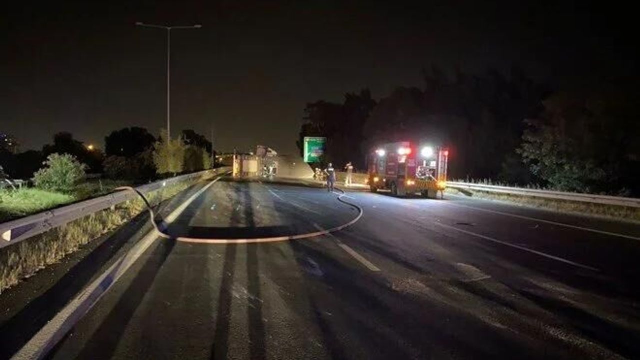 İzmir’den Aydın istikametine giden doğalgaz yüklü tır Yeniköy mevkiinde Aydın çevre otoyolu üzerinde devrilerek yolda yan yattı.