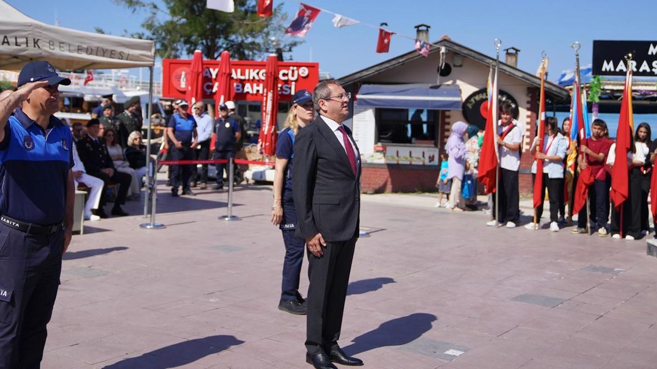 Törende konuşan Ayvalık Belediye Başkanı Mesut Ergin, ‘’Bugün bu toprakları korumak için ateşlenen ilk asker kurşununu, kahramanlarımızın aziz ruhlarını ve hatıralarını anmak üzere toplanmış bulunuyoruz.. 29 Mayıs 1919’da Ayvalık’ta 172. Alayın komutanı Yiğit Yarbay Ali Çetinkaya ve yiğit insanlardan oluşan askerleri vardı. Ve bu ilk kurşun tüm yurdun yanı sıra tüm dünyaya mal oldu. Ayvalık çevresinden topladığı milis kuvvetlerle beraber cephe oluşturdu ve ilk askeri kurşun Ali Çetinkaya ve arkadaşlarına nasip oldu. Bu gücü yaratan felsefenin inancın eseri olan Ayvalık’ta biz bu gururu 105 yıldır yaşıyoruz ve yaşamaya da devam edeceğiz ’’ sözleriyle Yarbay Ali Çetinkaya ve tüm kahraman yiğitleri andı.