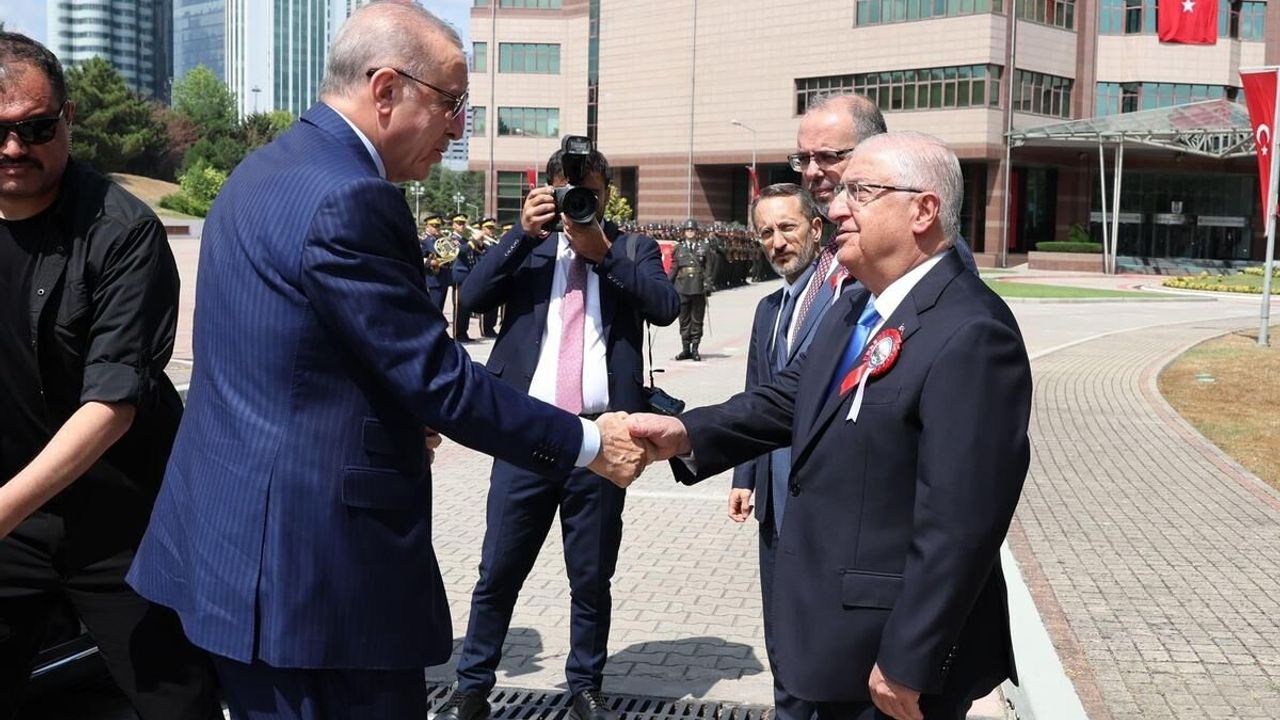 Milli Savunma Bakanı Yaşar Güler ve beraberindeki Türk Silahlı Kuvvetleri (TSK) komuta kademesi, Milli Savunma Üniversitesi’ndeki mezuniyet töreni öncesi Cumhurbaşkanı Recep Tayyip Erdoğan’ı karşıladı.