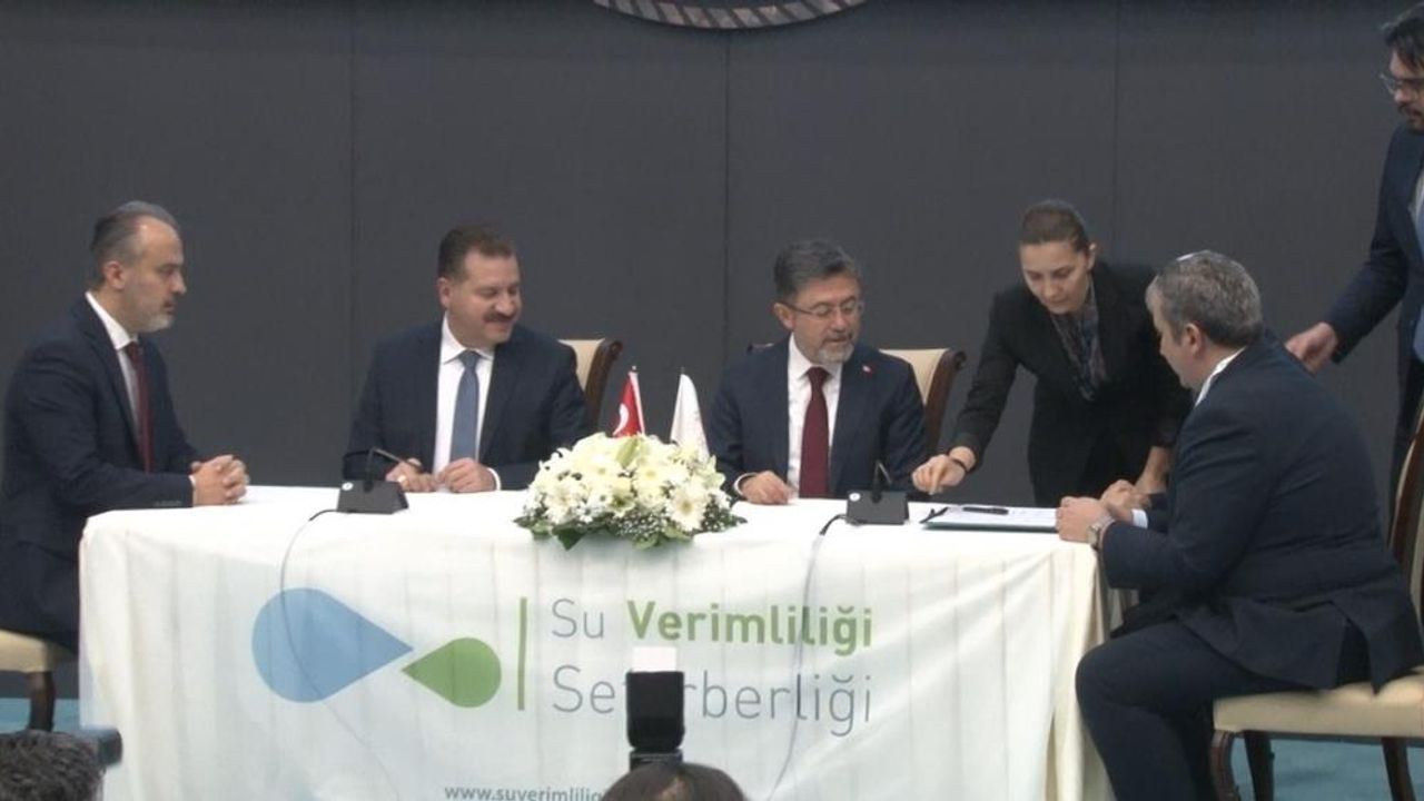 Konuşmaların ardından Bakan Yumaklı ve belediye başkanları ile “Su Verimli ve Belediye Su Kardeşliği” etkinliği çerçevesinde protokol imzalandı.