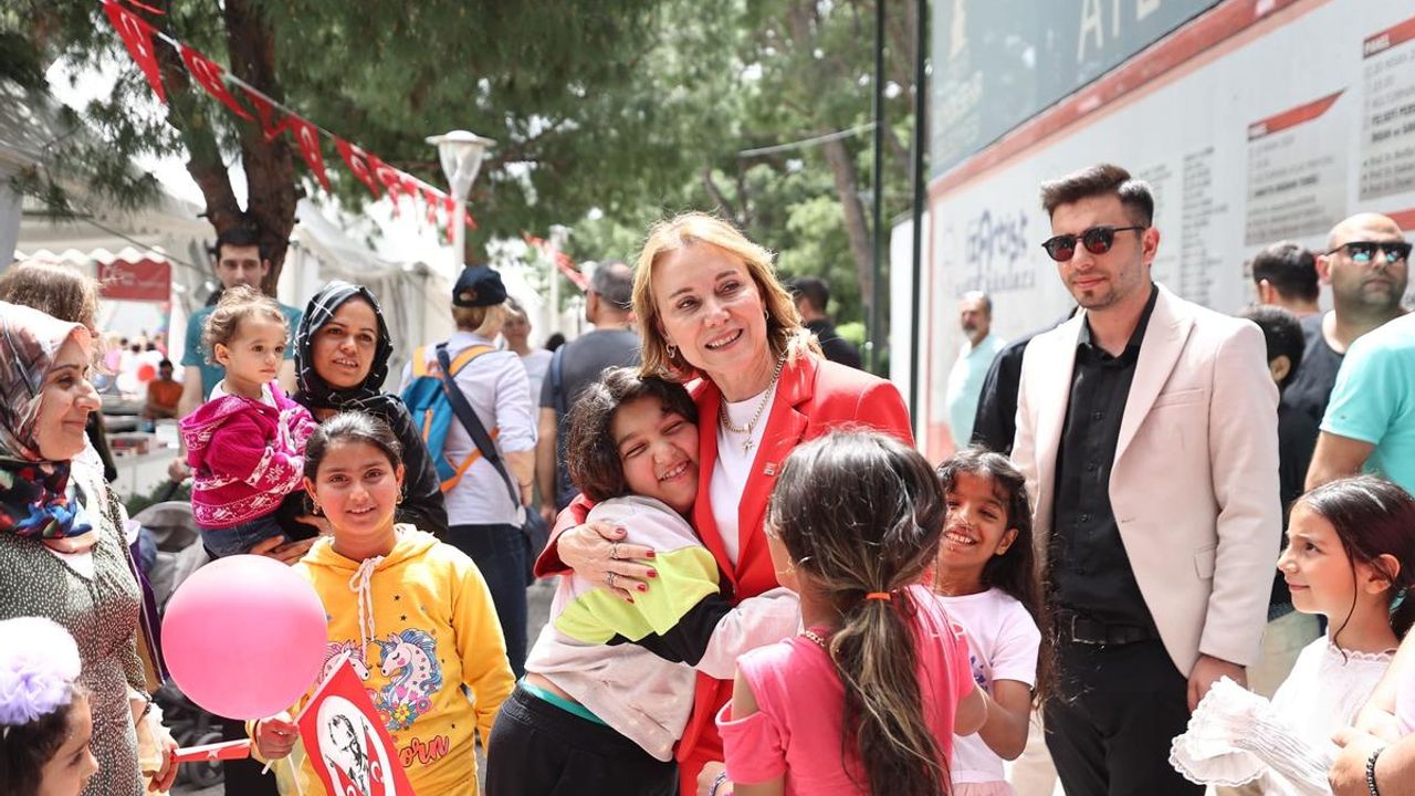 Konak Belediye Başkanı Nilüfer Çınarlı Mutlu, 23 Nisan Ulusal Egemenlik ve Çocuk Bayramı’nda Konaklı çocuklarla bir araya geldi. Basmane, Agora, Kadifekale, Tepecik ve Ege Mahallesi’nden 600 çocukla Kültürpark’ta buluşan Başkan Mutlu, kendisini “Mutlu Konak”, “En Büyük Başkan Bizim Başkan” sloganlarıyla karşılayan miniklerle kucaklaştı. Heyecanları gözlerinden okunan çocukların bayramını kutlayan Başkan Mutlu, “Mustafa Kemal Atatürk, ulusal egemenliğimizin simgesi olan bu özel günü siz çocuklara armağan etti. Bu güzel günde sizlerle beraber olmak çok güzel. Bizler, size umut dolu, adil, eşit bir gelecek inşa etmek için çalışıyoruz. Sizleri çok seviyoruz” diye konuştu.