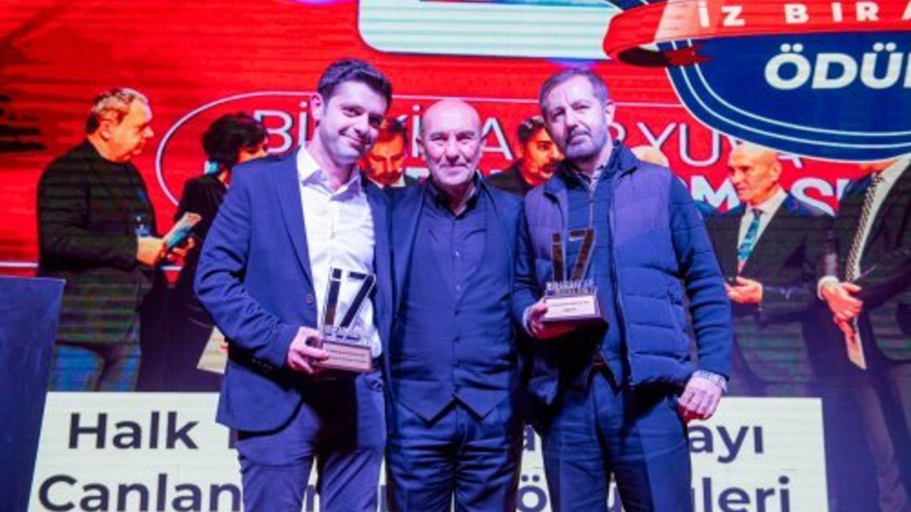 İzmir Büyükşehir Belediye Başkanı Tunç Soyer ile eşi Neptün Soyer, İz Gazete’nin yayın hayatına başlamasının 8’inci yılı nedeniyle düzenlenen programa katıldı. Alsancak Tarihi Havagazı Fabrikası’ndaki törende bu yılın “İz Bırakanlar” ödülleri de sahiplerini buldu.Gecede İz Bırakanlar Ödülleri’nin ilki, geçen yıl 6 Şubat’ta meydana gelen ve 11 kentte büyük yıkıma neden depremlerin ardından barınma sorununa çözüm bulmak için İzmir Büyükşehir Belediyesi’nin başlattığı “Bir Kira Bir Yuva” kampanyasına canlı yayında bağış toplanmasına destek olan Halk TV’ye ve bu organizasyonu örgütleyen Dayanışmayı Canlandıralım Gönüllüleri’ne verildi. Halk TV adına ödülü gazeteci ve TV programcısı Serhan Asker, Dayanışmayı Canlandıralım Gönüllüleri adına ise Bora Er aldı. Her iki isme ödülünü, İzmir Büyükşehir Belediye Başkanı Tunç Soyer verdi.