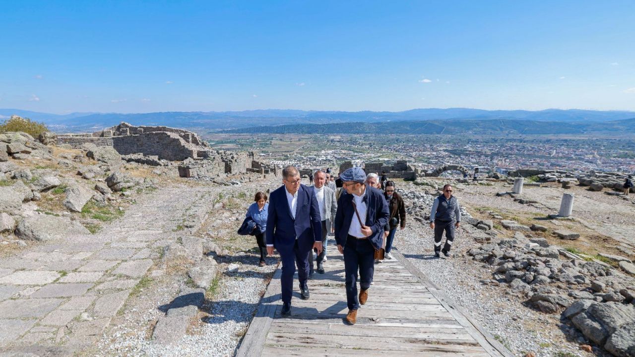 Bergama Belediye Başkanı Prof. Dr. Tanju Çelik ise, ilçenin gelişim sürecine değinerek, “Bergama, İzmir’in kuzeyinin parlayan yıldızı haline geldi. Biz de daha yaşanılabilir bir Bergama için özen göstereceğiz” dedi. Programda, Bergama’nın tarihi alanları ziyaret edilerek kazılar hakkında bilgi alındı.