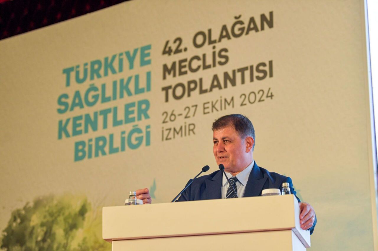 Türkiye Sağlıklı Kentler Birliği'nin 42. Olağan Meclis Toplantısı İzmir Büyükşehir Belediye Başkanı Dr. Cemil Tugay'ın ev sahipliğinde yapıldı. Toplantının ardından düzenlenen panelde konuşan Başkan Tugay, Sağlıklı Kentler Birliği'nin 151 üyesi ile birlikte çevresel ve toplumsal sorunlara karşı daha etkin bir mücadele hedeflediklerini ifade etti. Tugay, "Birliğimiz, iklim krizi, su yönetimi, toplum sağlığı ve döngüsel ekonomi gibi alanlarda yerel yönetimlerin iş birliği yapması için en uygun yapı. Bu fırsatı kaçırmamalı, daha aktif ve farkındalık yaratan bir yaklaşımı benimsemeliyiz," dedi.