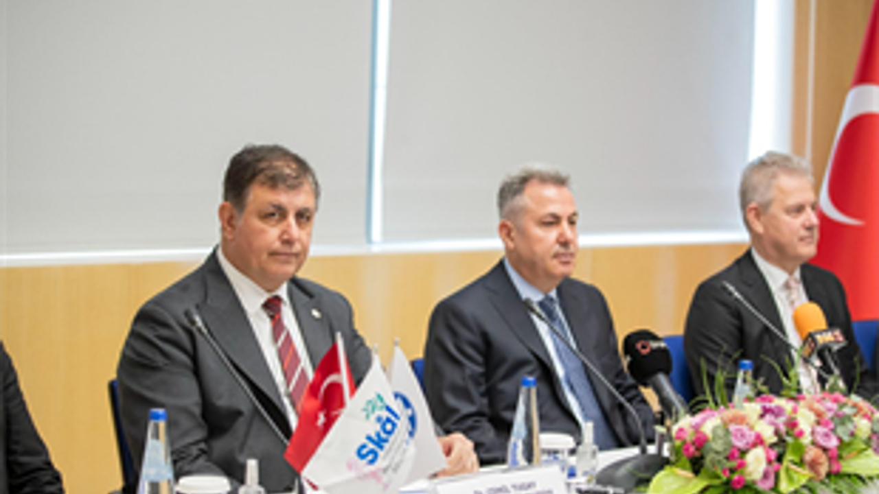İzmir Büyükşehir Belediye Başkanı Dr. Cemil Tugay, turizm profesyonelleri ve gönüllülerinden oluşan uluslararası iletişim ağı SKAL’ın 83’üncüsünü İzmir’de düzenleyeceği Dünya Kongresi için yapılan tanıtım toplantısına katıldı. 16-21 Ekim 2024 tarihlerinde dünyanın dört bir yanından misafirlerin ağırlanacağı büyük buluşma için İzmir Ticaret Odası’nda (İZTO) yapılan toplantıda İzmir Valisi Dr. Süleyman Elban, İzmir İl Kültür ve Turizm Müdür Vekili Fahrettin Kerem Çevik, İzmir Ticaret Odası Yönetim Kurulu Başkanı Mahmut Özgener, İZTO Meclis Başkanı Selami Özpoyraz, İzmir SKAL Kulübü Yönetim Kurulu Başkanı Güner Güney ve turizm sektöründeki temsilciler de yer aldı.