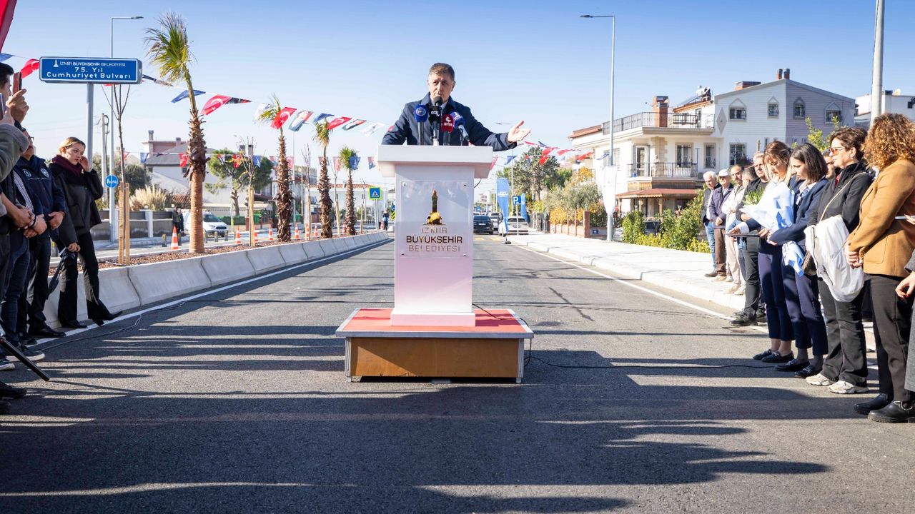 İzmir Büyükşehir Belediyesi tarafından Güzelbahçe’nin ulaşım ve altyapı sorunlarına kalıcı çözüm üretmek amacıyla hayata geçirilen 75. Yıl Cumhuriyet Bulvarı Projesi’nin ilk etabı törenle açıldı. Toplam 87 milyon 350 bin lira maliyetle yürütülen projede, 4 bin 250 metrelik bulvarın 1,5 kilometrelik ilk etabı İzmirlilerin kullanımına sunuldu.