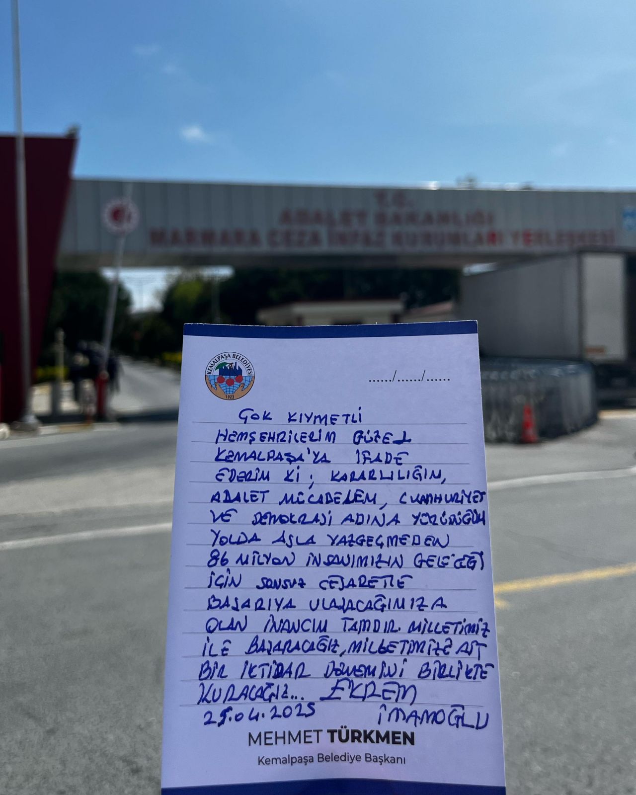Ziyaret sırasında Kemalpaşalılara özel bir not kaleme alan Ekrem İmamoğlu, şu sözlerle duygularını dile getirdi: