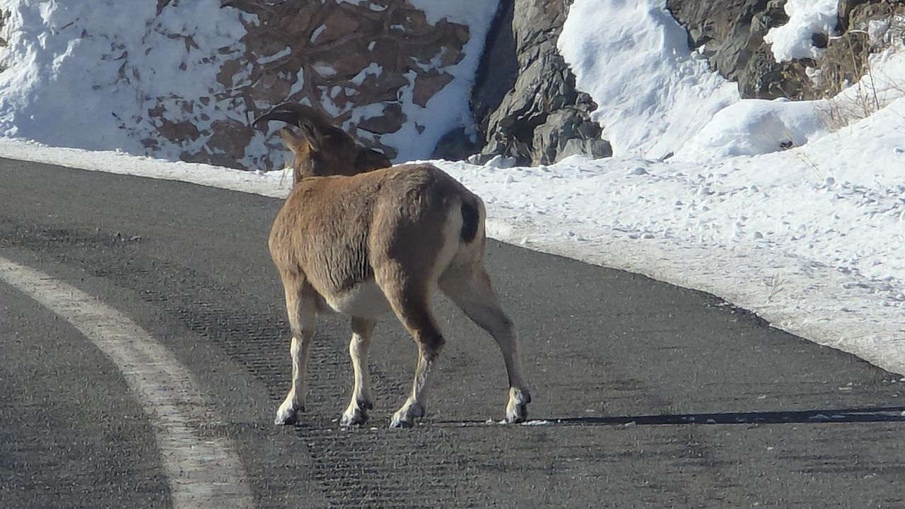 Gez Köyü yakınlarında tek başına dolaşan bir dağ keçisi ise aracın yaklaşmasıyla koşarak dağa doğru ilerledi ve kısa sürede gözden kayboldu.