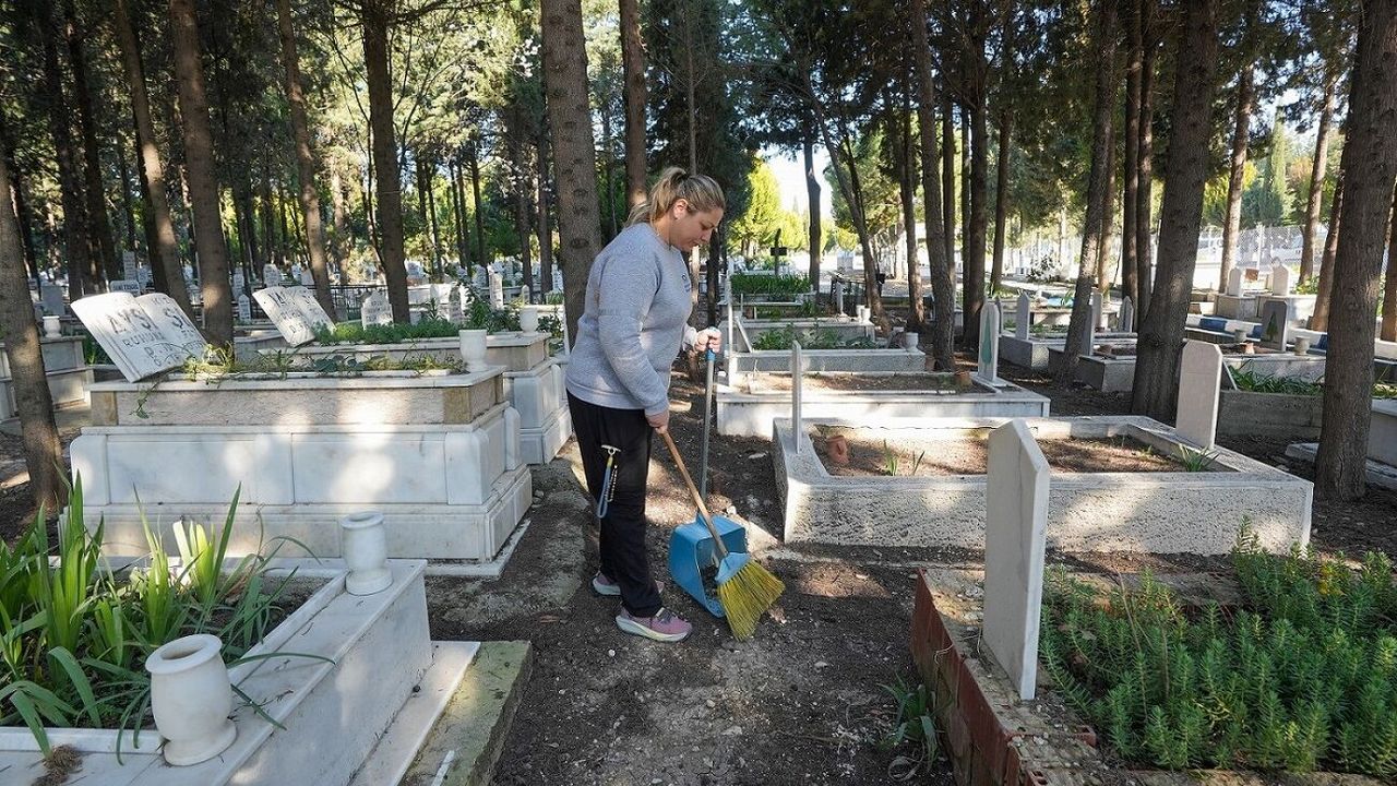 Gaziemir Belediyesi ile İzmir Büyükşehir Belediyesi’nin iş birliğiyle yürütülen çalışmalarda, yurttaşların kabir ziyaretlerini daha düzenli ve huzurlu bir ortamda gerçekleştirebilmesi hedeflendi. İlçedeki Sarnıç Mezarlığı, Eski Gaziemir Mezarlığı ve Yeni Gaziemir Mezarlığı’nda gerçekleştirilen çalışmalarda ekipler, mezarlık alanlarında genel temizlik yaptı. Süpürme işlemleriyle çöplerden arındırılan alanlarda, mezarlık içi yollar süpürge araçları ve tazyikli suyla yıkandı. Kabir çevresindeki atıkları toplayan ekipler, kötü koku ve bakteri oluşumunu önlemek amacıyla çöp konteynerlerini de yıkayıp dezenfekte etti.