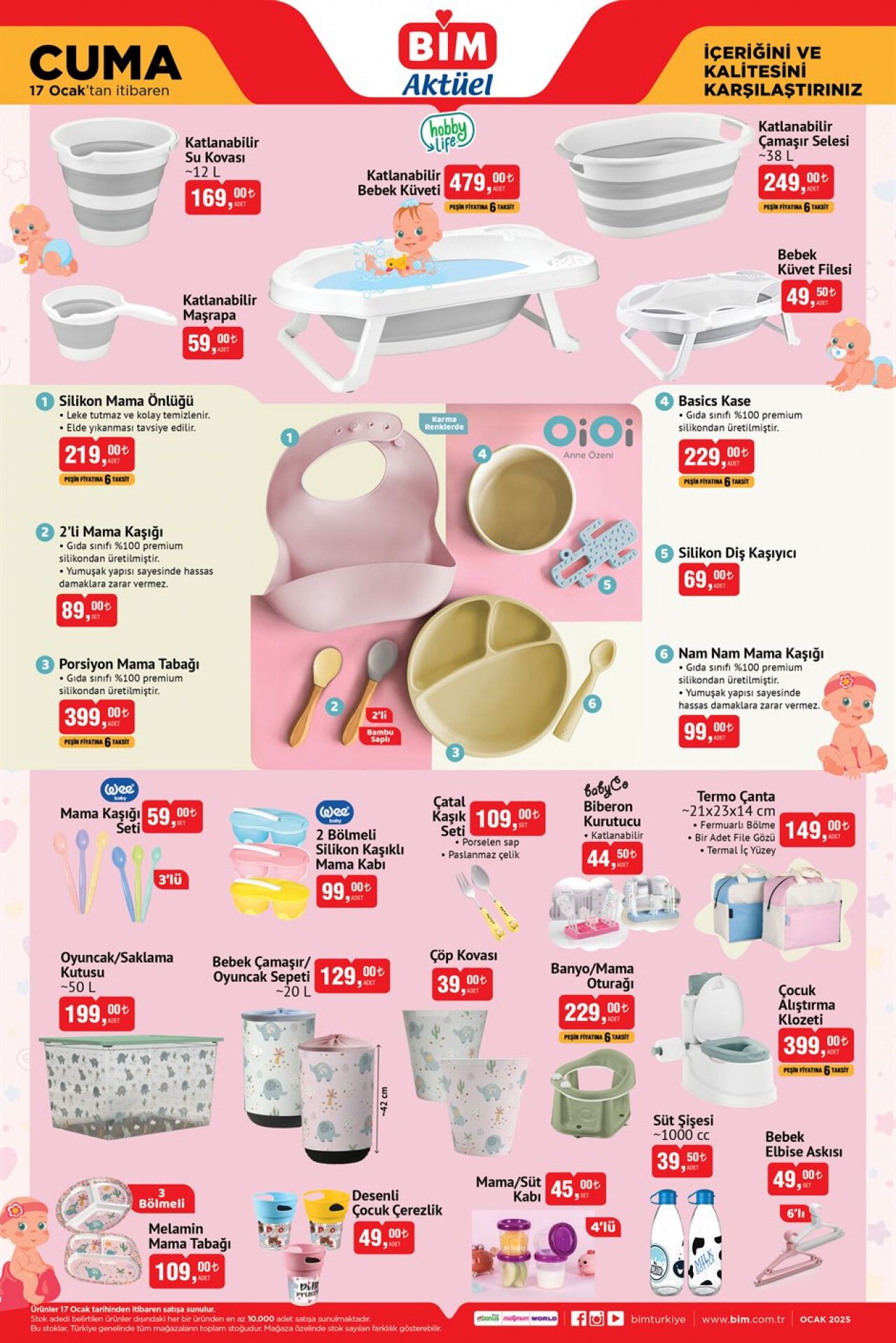 BİM Market avantajlarından faydalanmak isteyenleri ilgilendiriyor. BİM Market bugün uygulayacağı fiyatları yayınladığı afişler ile vatandaşlara duyurdu. Söz konusu afişlerde birçok bebek ve çocuk ürününün yer aldığı görüldü. Ürünlerin büyük bir kısmının bugün yani 17 Ocak 2025 tarihinde satılması bekleniyor.