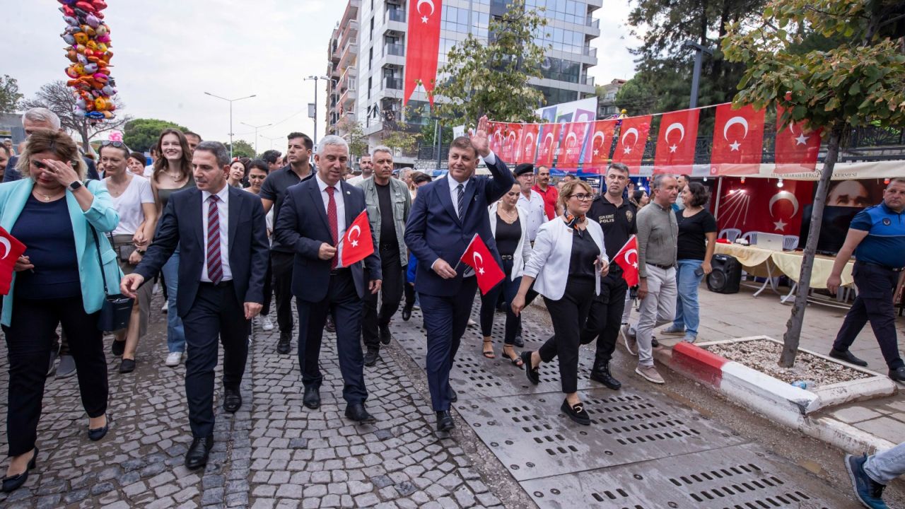 Ulusumuzun yarattığı değerlere ve bugüne taşıdığı mirasa dikkat çeken Tugay, sözlerine şöyle devam etti: "Ne mutlu bu mirasın değerini bilenlere ne mutlu ülkenin değerini bilenlere ne mutlu bu ülkenin güzel büyük asil milletine. Hepimizin birinci görevi sahip olduğumuz değerlerin farkında olmak, değerlere sahip çıkmak, daha önemli görevimiz ülkemizi, değerlerimizi daha ileriye taşımak. Çocuklarımıza, gençlerimize borcumuz olan güzel ülkeyi beraber kuracağız. Size olan borcumuzu ödeyeceğiz. Bize olan güveninizin karşılığını mutlaka ödeyeceğiz. Ülkemizi, şehrimizi çalışarak çok daha ileriye hep beraber götüreceğiz."