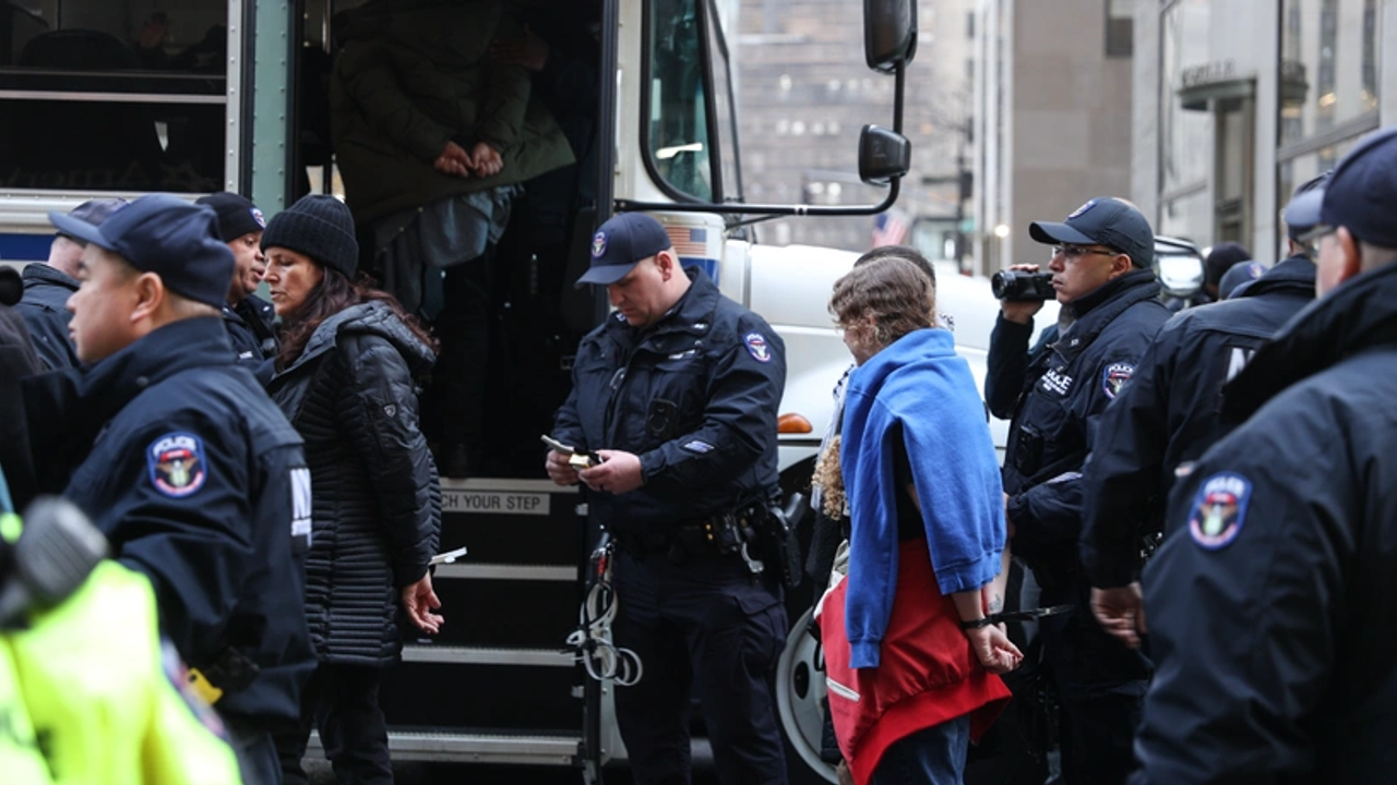 New York Polis Teşkilatı (NYPD) tarafından televizyon binasının çevresinde ve lobisinde geniş güvenlik önlemleri alındığı görüldü. 50’ye yakın gösterici de gözaltına alınarak polis otobüslerine bindirildi.