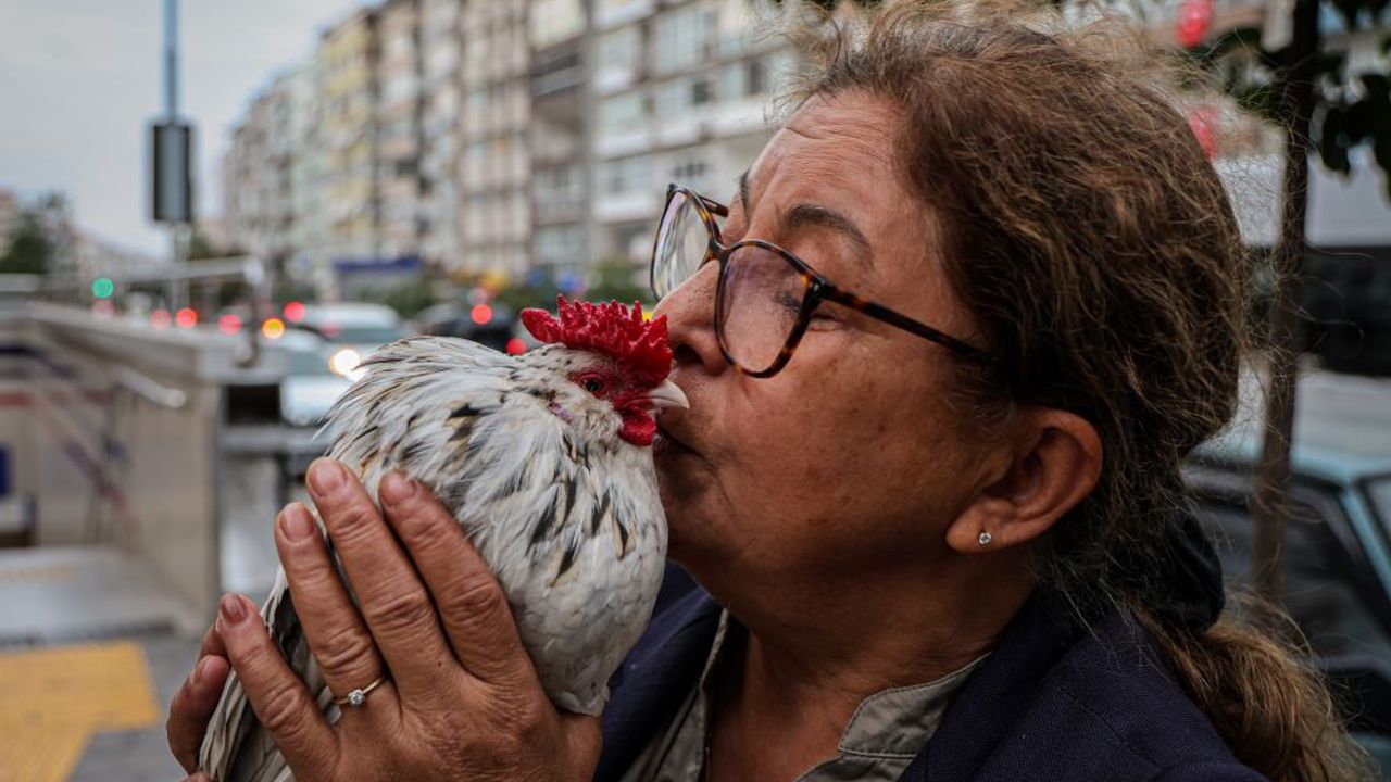 İzmir’de yaşayan 64 yaşındaki Hatice Suner’i omuzunda horoz ile yolda yürürken gören vatandaşlar şaşkınlıklarını gizleyemiyor. Kimisi Suner’i durdurarak horozunu seviyor, kimisi ise fotoğraf çektiriyor.