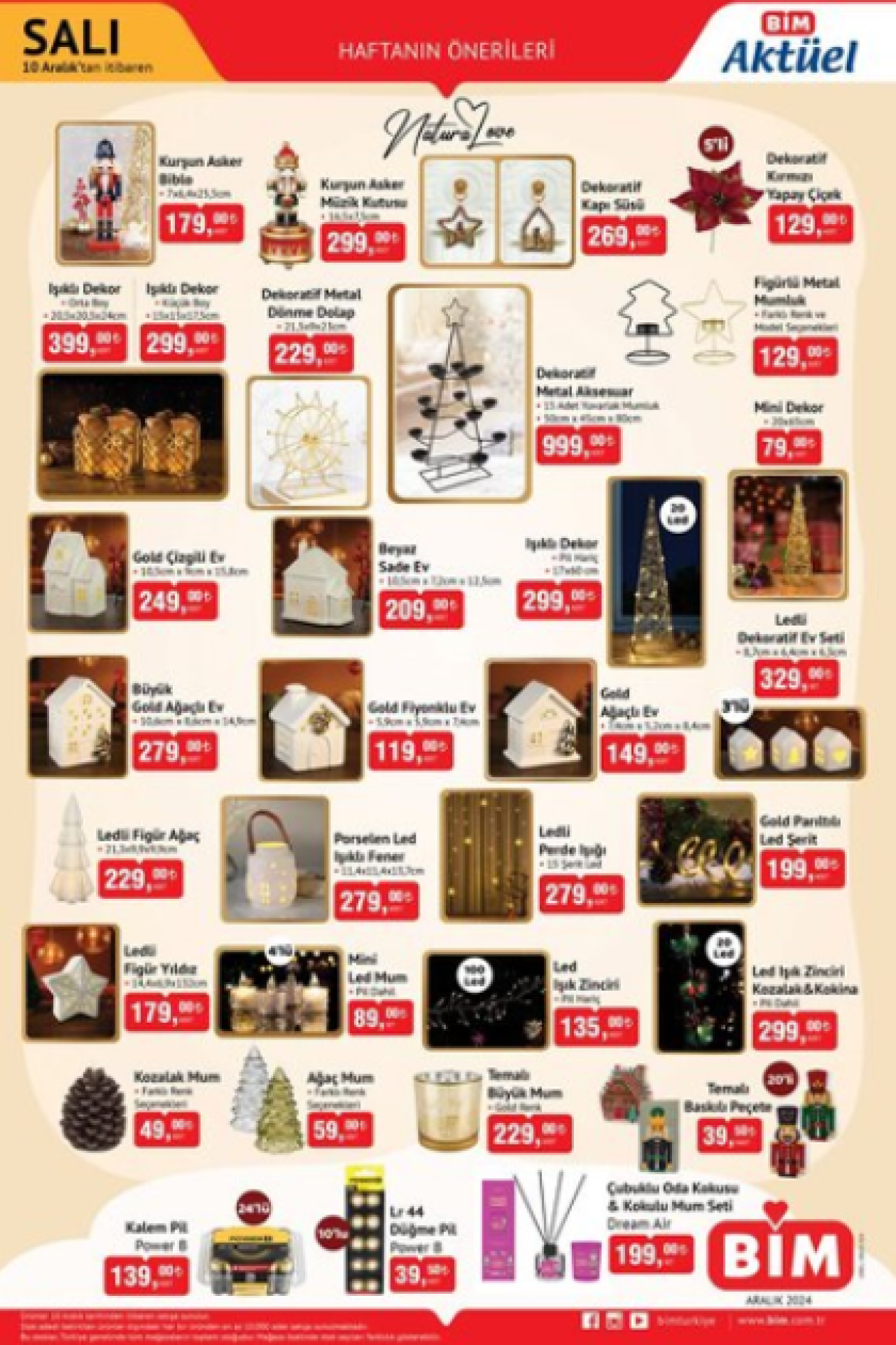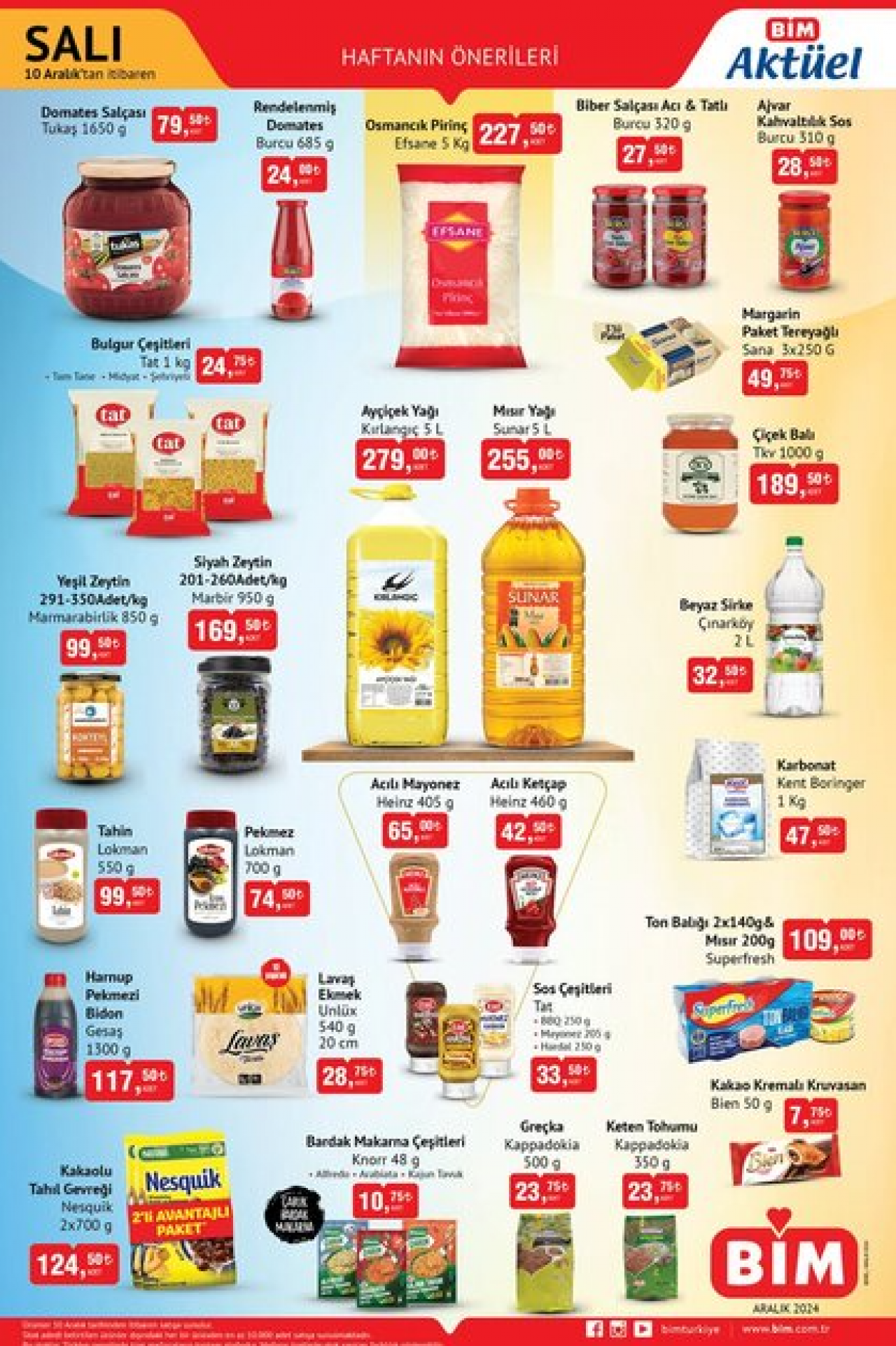 BİM resmi internet üzerinden 10 Aralık aktüel kataloğunu duyurdu. BİM'den alınan bilgilere göre 5 kilo Efsane osmancık pirinç 227.50 TL'den, 5 kilo Sunar Mısır yağı 255 TL'den satışa sunulacak. Peki başka hangi ürünlerde indirim olacak? İşte 10 Aralık Pazartesi BİM Aktüel katoloğu...
