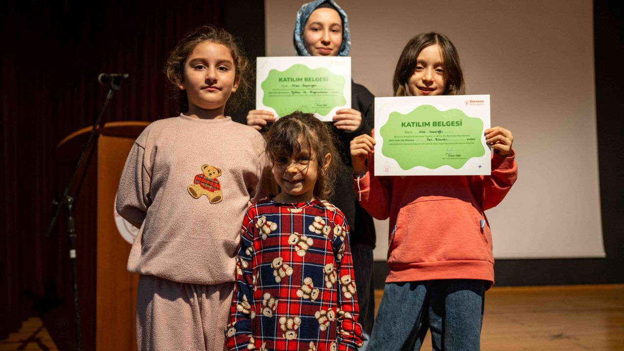 Bornova Belediyesi Mevlana Toplum ve Bilim Merkezi bünyesinde düzenlenen bilim kulüpleri ile kış bilim kampını başarıyla tamamlayan 179 öğrenci için katılım belgesi töreni düzenlendi. Akademik ve uygulamalı içeriklerle hazırlanan programların çocukların bilime ilgisini artırdığı vurgulandı. Güz Dönemi Bilim Kulüpleri ile “Kış Bilim Kampı: Mutfakta Bilim” etkinliklerini tamamlayan öğrenciler, düzenlenen törenle belgelerini aldı. Eğlenceli ve uygulamalı içeriklerle yürütülen programların yoğun ilgi gördüğü belirtildi.