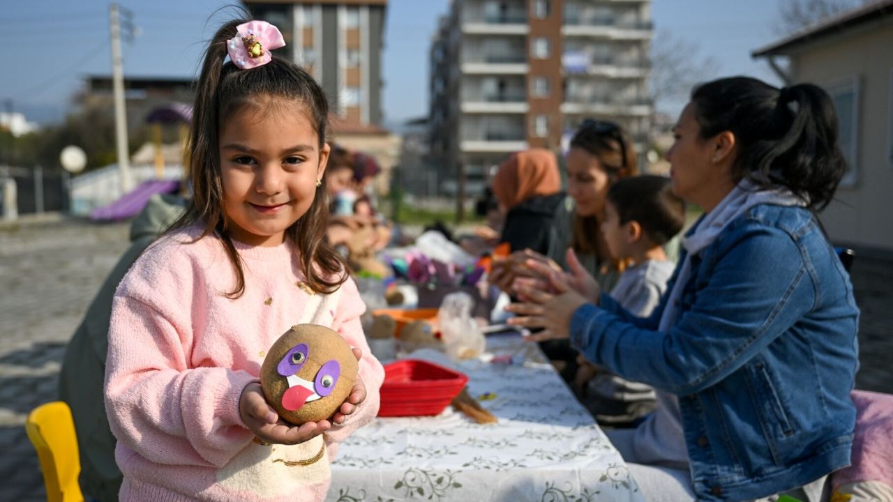 Etkinlikte çocuklar makas, kağıt ve yapıştırıcı kullanarak kendi “çim adam” çalışmalarını hazırladı. Renkli görüntülere sahne olan atölye, çocukların el becerilerini geliştirirken paylaşma ve birlikte üretme deneyimini de sağladı.