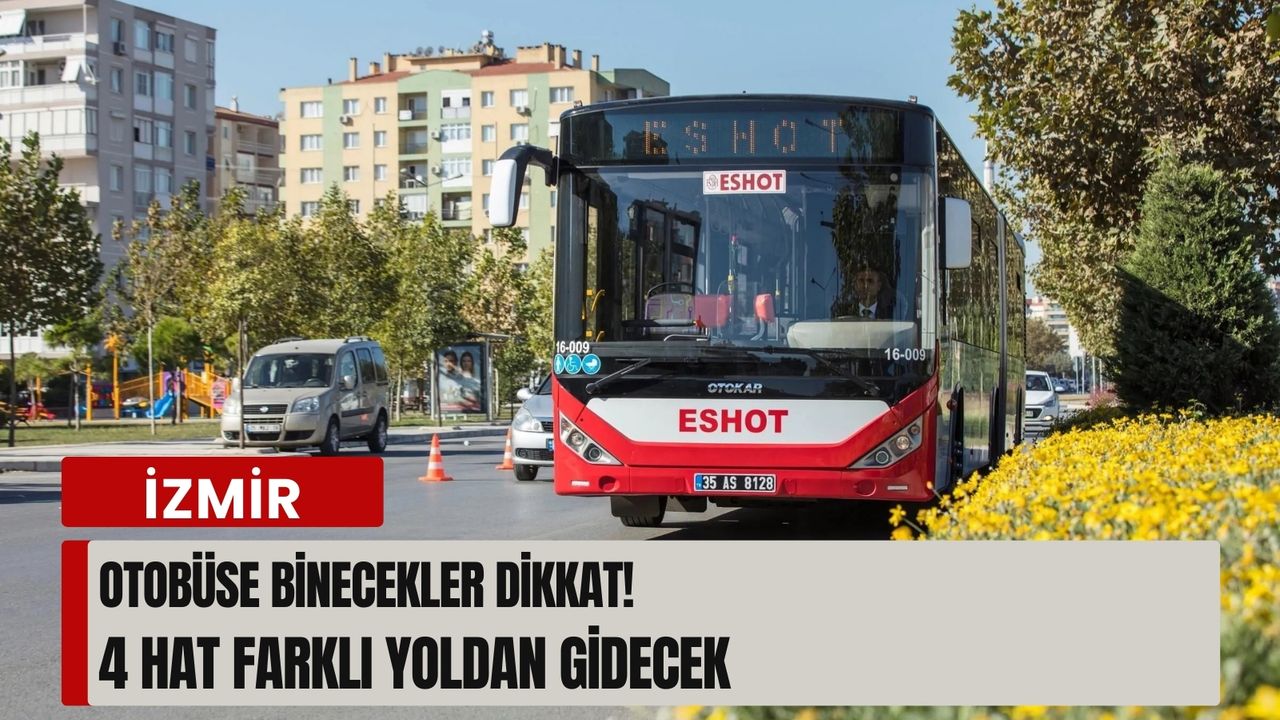 İzmir Büyükşehir Belediyesi ESHOT Genel Müdürlüğü'nden yapılan açıklamaya göre, 14 Ocak 2026 Çarşamba günü itibarıyla Bornova Mevlana Mahallesi, 1734 Sokak'ta gerçekleştirilecek bina tadilat çalışmaları nedeniyle bazı otobüs hatlarında geçici güzergâh değişikliğine gidiliyor.