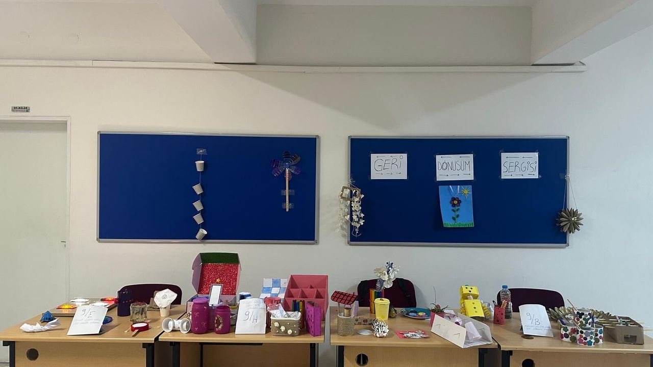 Tüketimin hızla arttığı günümüzde, doğaya karşı sorumluluğumuzu hatırlatan anlamlı bir sergi kapılarını ziyaretçilere açtı. Elindeki atık malzemeleri sanatsal ve işlevsel ürünlere dönüştüren öğrencimiz, hazırladığı geri dönüşüm projelerini okulda düzenlenen özel bir sergiyle tanıttı.