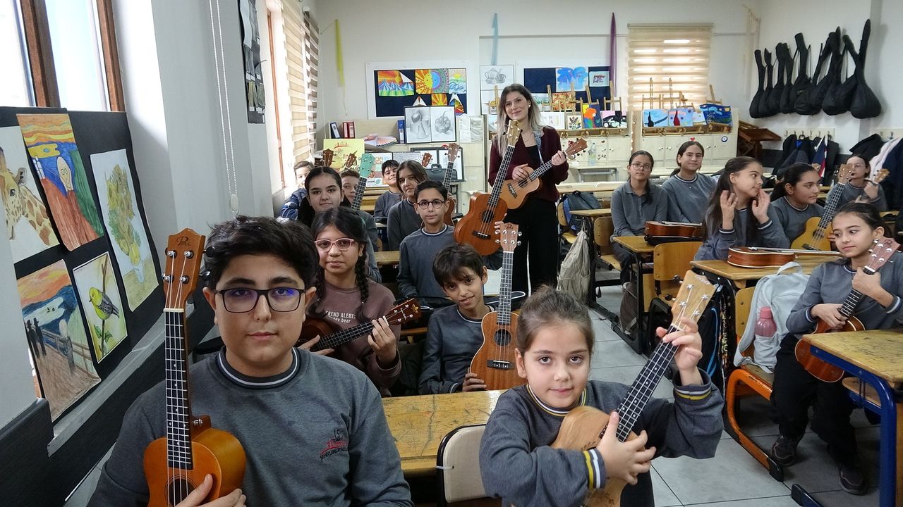 Okulda 4 yıldır müzik öğretmenliği yapan İlayda Uludoğan ise ukulelenin öğrenciler için uygun bir enstrüman olduğunu vurgulayarak, "Ukulele tam bir eşlik enstrümanı. Öğrenmesi kolay ve hızlı sonuç veren bir enstrüman. Ortaokul öğrencileri için oldukça uygun. Yaklaşık 4 yıldır ukulele egzersizi açıyorum. İsteyen öğrencilerimizle birlikte çalıp söylüyoruz. Çocuklarda bu heves olduğu sürece benim için öğretmek zor değil. Dersleri eğlenceli hale getirmeye çalışıyorum" şeklinde konuştu.
