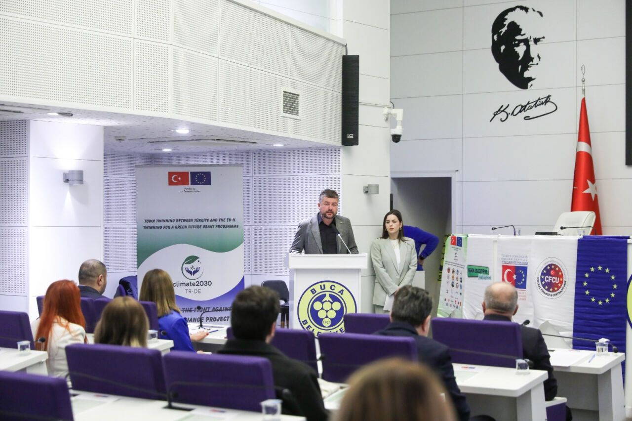 Avrupa Birliği destekli İklim Değişikliği Mücadelesinde Biz de Varız Projesi kapsamında düzenlenen kapanış toplantısında konuşan Başkan Duman, iklim değişikliğinin artık uzak bir tehdit olmaktan çıkıp günlük yaşamı etkileyen bir gerçeklik haline geldiğini vurguladı. Duman, “Yerel yönetimlerin bu konuda sorumluluk alması gerekiyor. Biz de Buca Belediyesi olarak üzerimize düşeni yapıyor, kararlı adımlarla ilerliyoruz” dedi.