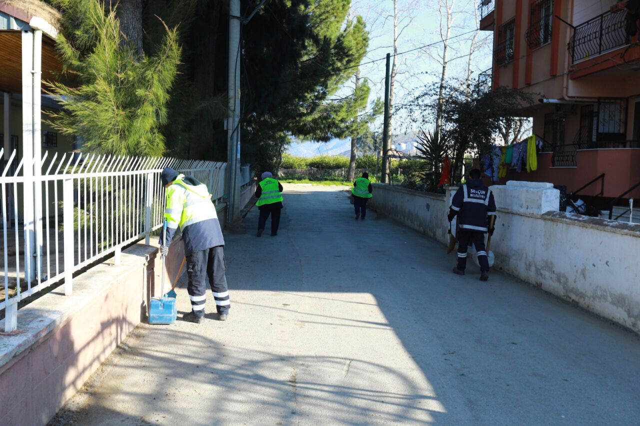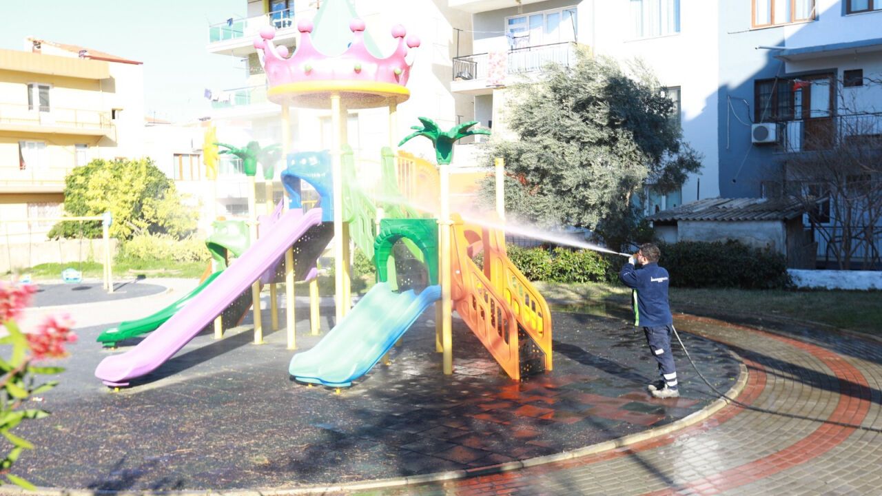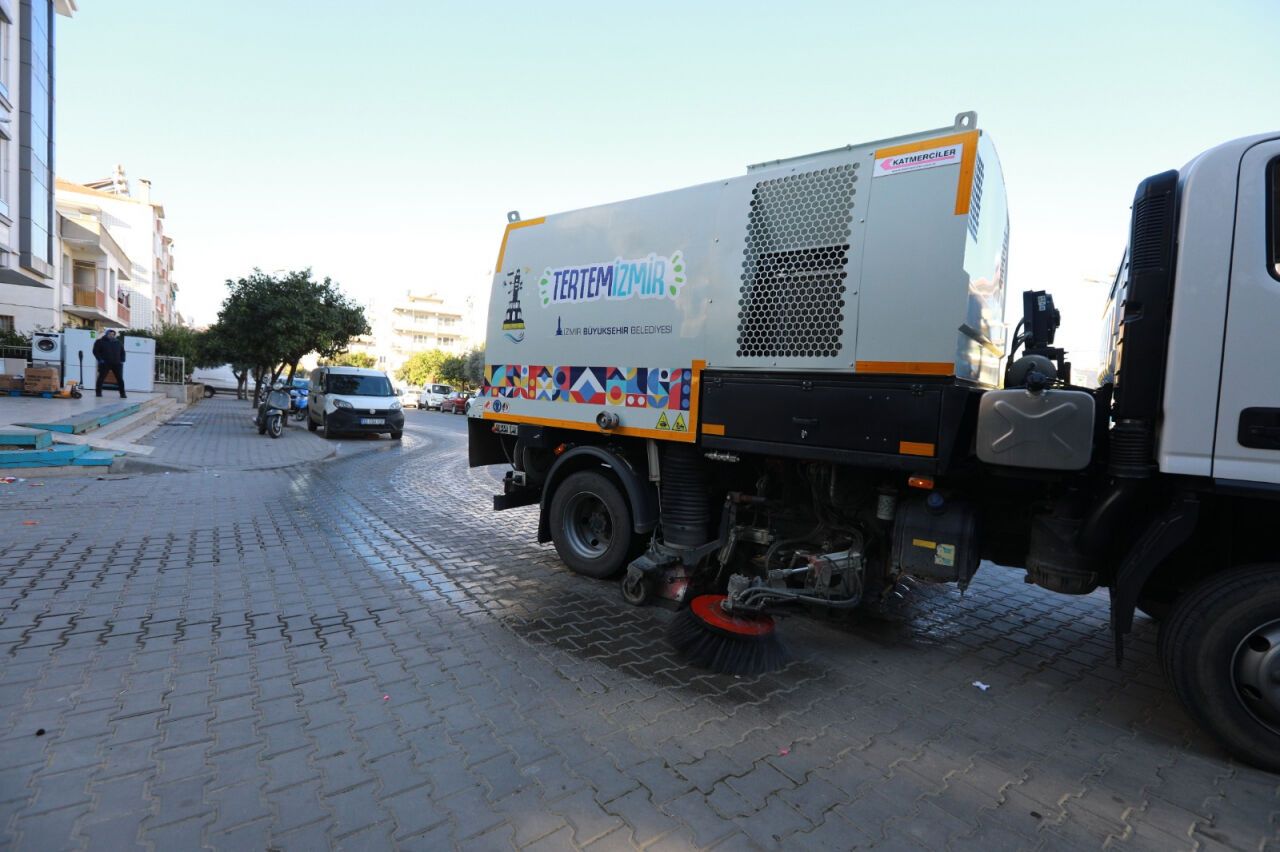 İzmir Büyükşehir Belediyesi İklim Değişikliği ve Sıfır Atık Dairesi Başkanlığı Kent Temizliği Şube Müdürlüğü tarafından görevlendirilen 23 kişilik temizlik ekibi, Efes Selçuk Belediyesi temizlik emekçileriyle iş birliği içinde çalışarak, ilçenin sokaklarını pırıl pırıl yaptı. Çocukların oyun alanları olan parklarda toplanan çöplerin ardından, oyun grupları basınçlı suyla temizlenerek hijyen sağlandı. Ekipler, cadde ve sokaklarda topladıkları çöpleri süpürme araçları ile yerinden kaldırıp, basınçlı su ile yıkama işlemi gerçekleştirdi.