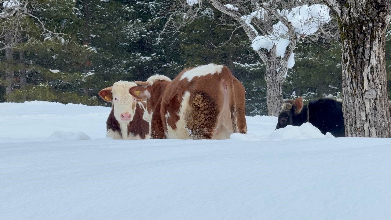 Öte yandan Karabük’ün Eflani ilçesine bağlı Çukurören Köyü’nde de benzer manzaralar yaşandı. Bir çiftçinin sulamaya götürdüğü büyükbaş hayvanların, 1 metreyi aşan karda güçlükle ilerlediği anlar cep telefonu kamerasıyla kaydedildi.