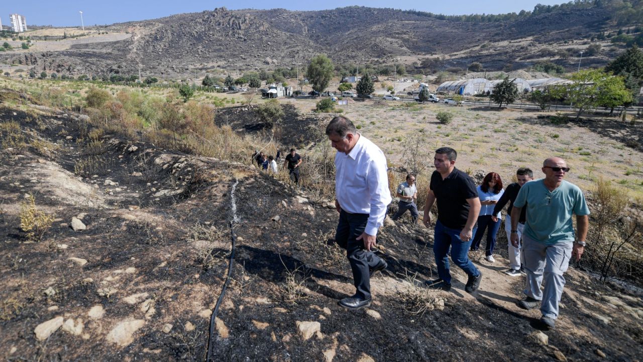 İzmir Büyükşehir Belediye Başkanı Dr. Cemil Tugay, Karşıyaka Yamanlar bölgesinde çıkan ve geniş bir alanda etkili olan yangınların ardından, bölgedeki incelemelerini bugün de sürdürdü. Karşıyaka Belediyesi'ne ait Zübeyde Hanım Mahallesi'nde, ormanlık alan ile yerleşim yerleri arasında bariyer görevi üstlenen ve yangının etkilediği 98 bin metrekare alana sahip Mutluluk Ormanı'nı inceledi. Çoğunluğu yangına dayanıklı servilerin yanı sıra fıstık çamı, mezarlık çamı gibi ağaçların yer aldığı ormanı inceleyen Başkan Tugay, uzmanlardan alanın kurtarılması için ne tür çalışmaların yapılabileceği konusunda bilgi aldı.