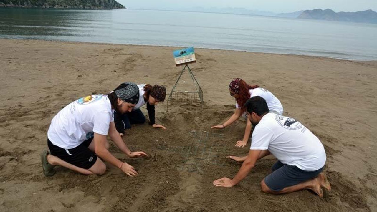 Yaz aylarını bölgede geçirmek ve yumurtlamak için gelen caretta carettalar kazdıkları 50-60 santimetrelik çukurlara yumurtalarını bırakmaya başladı.