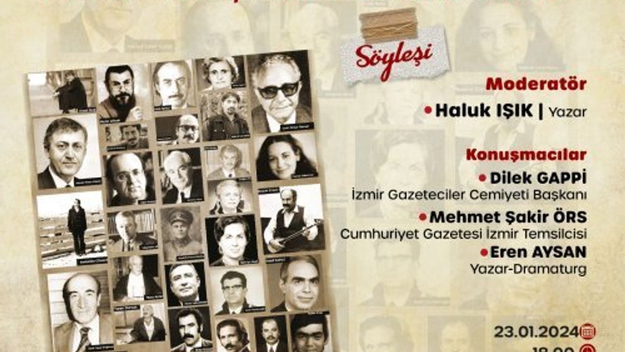 Yazar Haluk Işık moderatörlüğünde gerçekleşecek olan söyleşiye, İzmir Gazeteciler Cemiyeti Başkanı Dilek Gappi, Cumhuriyet Gazetesi İzmir Temsilcisi Mehmet Şakir Örs ve yazar-dramaturg Eren Aysan, konuşmacı olarak katılım sağlayacak.