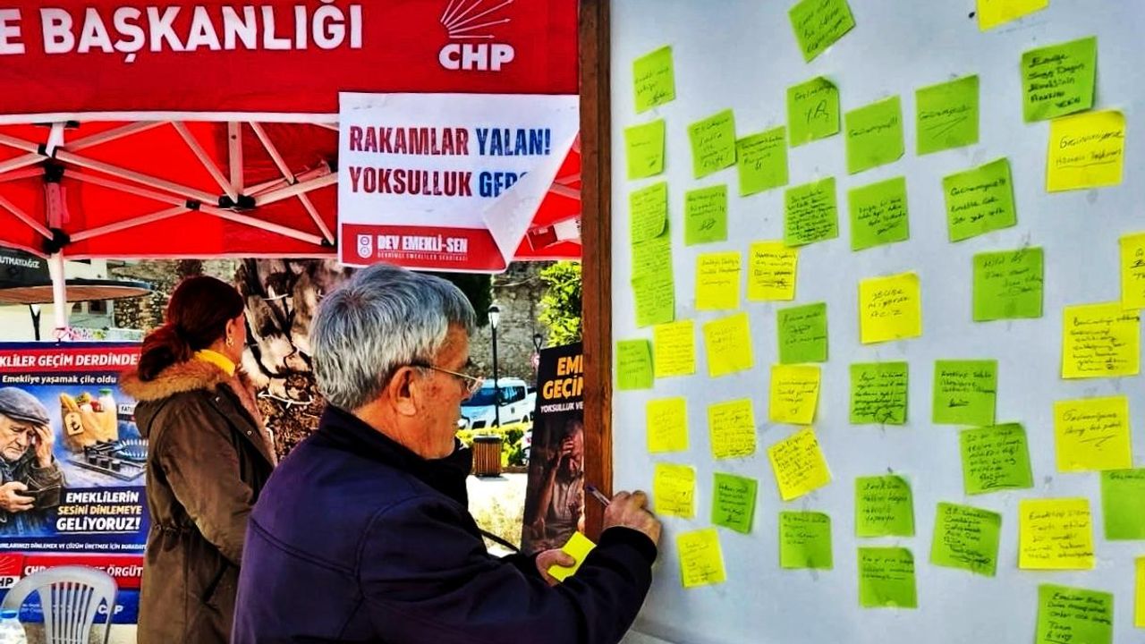 Meydana kurulan platformda emekliler yalnızca slogan atmakla kalmadı; yaşadıkları ekonomik darboğazı, mutfaktaki yangını ve taleplerini yazdıkları notlarla dile getirdi. Paylaşılan her mesajda ortak bir talep öne çıktı: “İnsanca yaşamak istiyoruz.”