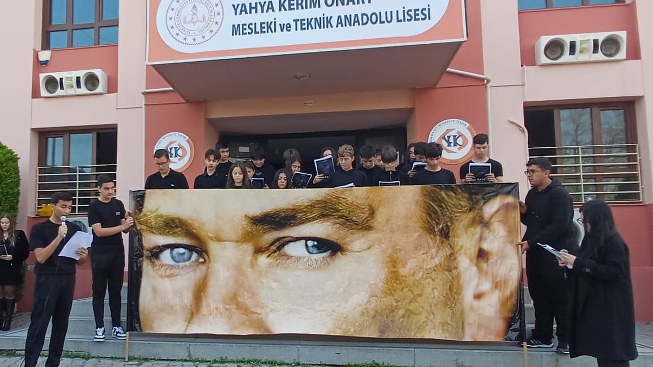 Soğuk bir kasım sabahı yitirdiğimiz Türk'ün Ata'sını bir kez daha yüreklerde hüzün, gözlerde yaşla hatırlarız. M. Kemal Atatürk'ün 87. ölüm yıl dönümü, okulumuz öğretmenlerinden N. Pürnur Tarıkahya ve Nalan Özkan yönetiminde öğrencilerimizin hazırladığı programla anıldı. Programda şiirler okundu, günün öneminden bahsedildi; 10/A sınıfı öğrencileri tarafından oratoryo gösterisi sunuldu. Program, anaokulu öğrencilerimizin gösterisiyle son buldu.