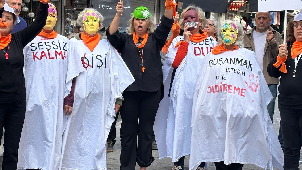 Yürüyüş boyunca “Kadına şiddete hayır”, “Kadınlar birlikte, birlikte güçlü” sloganları atılırken, “Yaşasın kadın dayanışması” ve “Erkek şiddetine karşı dur de” pankartları taşındı. Cumhuriyet Meydanı’nda ise Çeşme Kent Enstitüsü’nün “Susma!” adlı tiyatro gösterisi duygu dolu anlar yaşattı.